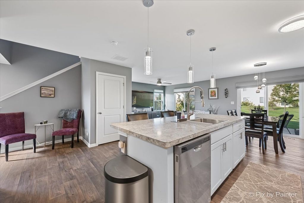 Exceptional End Unit in West Lake - Modern Style & Premium Location. Welcome to this stunning end-unit townhome, built in 2021 and perfectly placed on a corner lot. Offering a balance of style, comfort, and smart updates, this home is designed for modern living. The main level greets you with an inviting two-story entrance and a spacious open layout. A bright kitchen anchors the space, featuring white cabinetry, stainless steel appliances, and an oversized island that's ideal for gatherings. The adjoining dining and living areas create a natural flow, complemented by a newly redesigned powder room and a screen door addition that brings in fresh air and light. Upstairs, a flexible loft accompanies three bedrooms and two full baths. The primary suite features a refreshed private bath and a custom walk-in closet with built-ins, while the additional bedrooms provide generous space for family or guests. Everyday routines are simplified with a convenient second-floor laundry. Throughout the home, you'll find upgraded light fixtures, faucets, fresh paint, and stylish hardware that give every room a polished, move-in-ready look. Ideally located just minutes from the vibrant heart of downtown Cary, this property offers easy access to the Metra station, along with the convenience of nearby shopping and dining options. Best Price for a 3-Bedroom End Unit in West Lake!