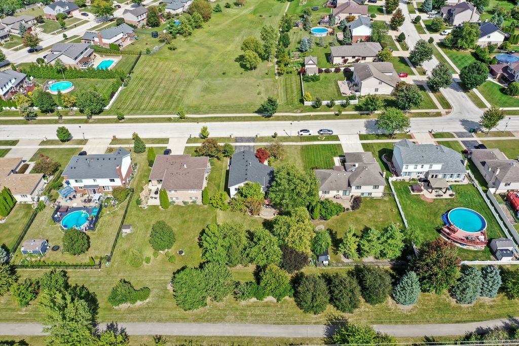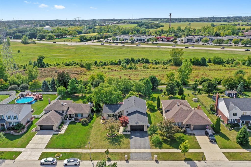 Welcome to this beautiful quad-level home in the desirable Kingston Hills subdivision of Homer Glen! This spacious residence offers 3 bedrooms plus a den/office or even 4th bedroom, 2 full baths, and a spacious family room. The kitchen features an abundance of cabinets, an island with a built-in beverage cooler, updated flooring, and a modern refrigerator, with a dinette area that opens to the backyard. Step outside to your private oasis featuring a brick paver patio, firepit, and an expansive yard-perfect for entertaining, gardening, or simply enjoying the outdoors. The backyard opens to open space with a walking/biking trail so you will most likely never have neighbors. The home has seen many updates, including fresh paint throughout, new light fixtures, and replacement of most windows and a new roof. The partially finished basement provides additional living space and awaits your personal touch. An attached 2-car garage adds convenience. Seller may need a few days of post-closing possession. Washer, dryer, hot tub, and curtains are excluded, but blinds will remain. Conveniently located near shopping, dining, and more-come tour this home and fall in love!