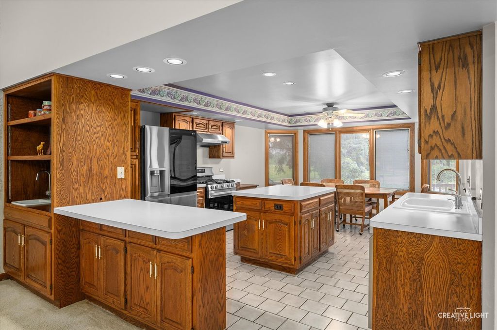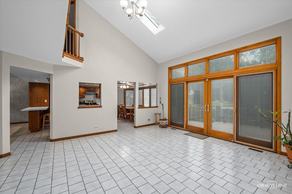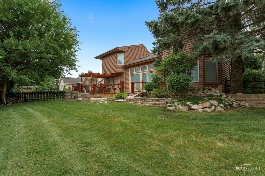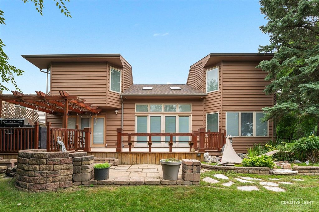 If you're looking for a home that feels wide open, full of light, with major updates done-this is it. Step into this unique 4-bedroom (1 bedroom in basement), 3 full bathroom Naperville gem where the open floor plan and dramatic vaulted ceilings instantly make a statement. The heart of the home is the great room, where vaulted ceilings stretch above and skylights, which were updated in 2025 and now include remote-controlled shades, from the living room and dining room flood the space with natural light. It's the perfect place to unwind or entertain, complete with a fireplace and built-in wet bar and seamless flow into the kitchen. Speaking of the kitchen-you'll find an eat-in layout with a central island, newer refrigerator and dishwasher (2021), and a brand-new gas stove installed in July 2025. Pella windows in the front of the home and four upstairs windows were replaced in 2017, adding even more efficiency and style. On the main floor, the spacious primary suite features a large walk-in closet and full bath with dual sinks, stand-up shower and whirlpool. Upstairs you will find, 2 large bedrooms, loft area and full bath with an additional skylight. Head downstairs to a fully finished basement that brings the fun-complete with a home office, a bedroom, full bathroom, and a cozy theatre area with another fireplace. And yes, there's even a themed tiki bar with swing seats... because why not? Outside, enjoy a freshly stained deck that overlooks a serene koi pond, perfect for quiet mornings or evening get-togethers. The home's siding was just refreshed with a new stain, and a brand-new roof was added in July 2025, meaning the big projects are already taken care of. Located within walking distance to the local elementary school and park, and tucked into a sought-after Naperville location-this home offers high ceilings, open spaces, and fresh updates from top to bottom. Come see the difference a little extra space-and a lot of personality-can make.