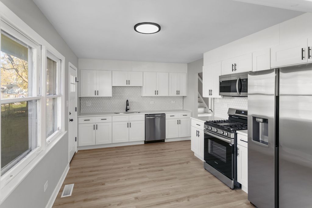 This beautifully updated home is ready to welcome its new owners! Seller is willing to buy down your interest rate with acceptable offer! Seller is also open to "rent to own". Step into the stunning new kitchen, complete with sleek quartz countertops, classic white shaker cabinets, and premium stainless steel appliances. The bathrooms have been stylishly renovated, and the home features new flooring throughout, including luxurious vinyl plank and plush carpet. With a brand-new HVAC system, furnace, and central air conditioning, comfort is assured year-round. Fresh interior paint, modern fixtures, and updated lighting add a bright, contemporary touch. The spacious yard is ideal for gatherings and outdoor fun. Renovations have been fully permitted for peace of mind. Lower level room off the garage will (can) be turned into a 4th bedroom by the seller if requested. (see photo with red outline showing how that would be achieved. Explore the immersive 3-D tour with floor plan and schedule your private showing today!