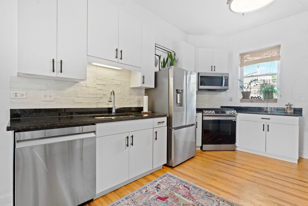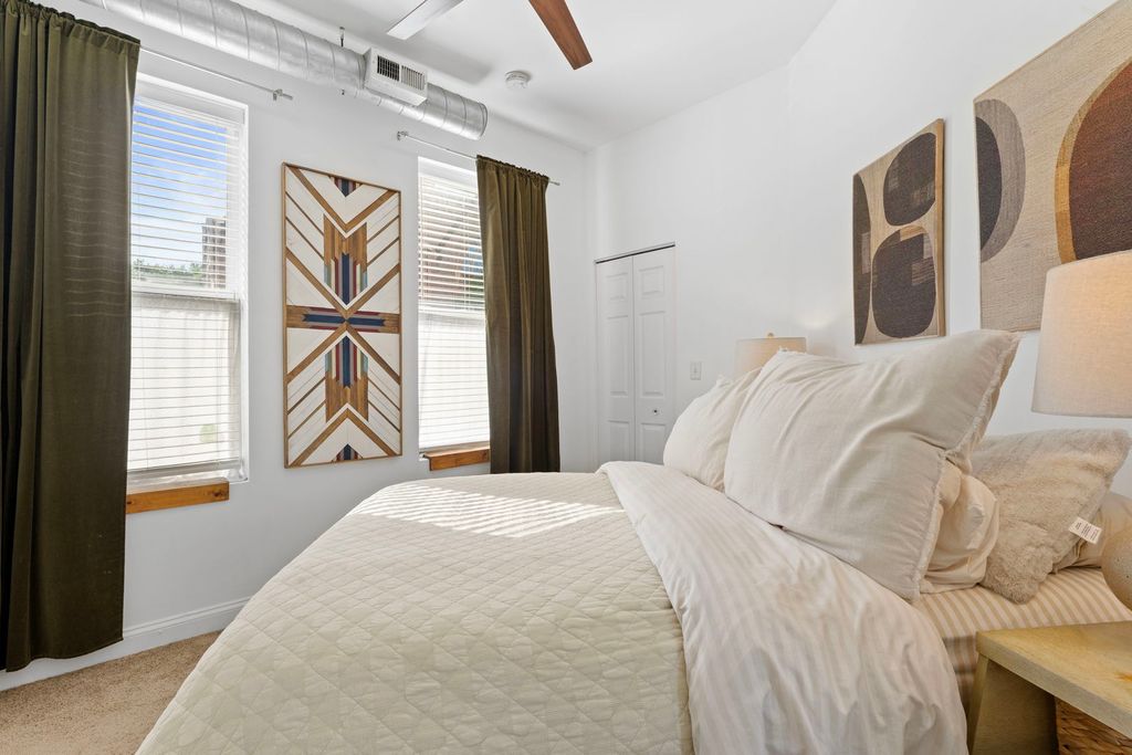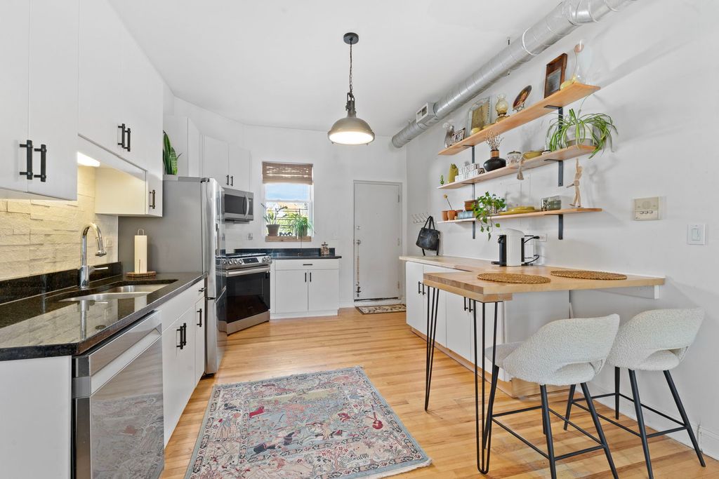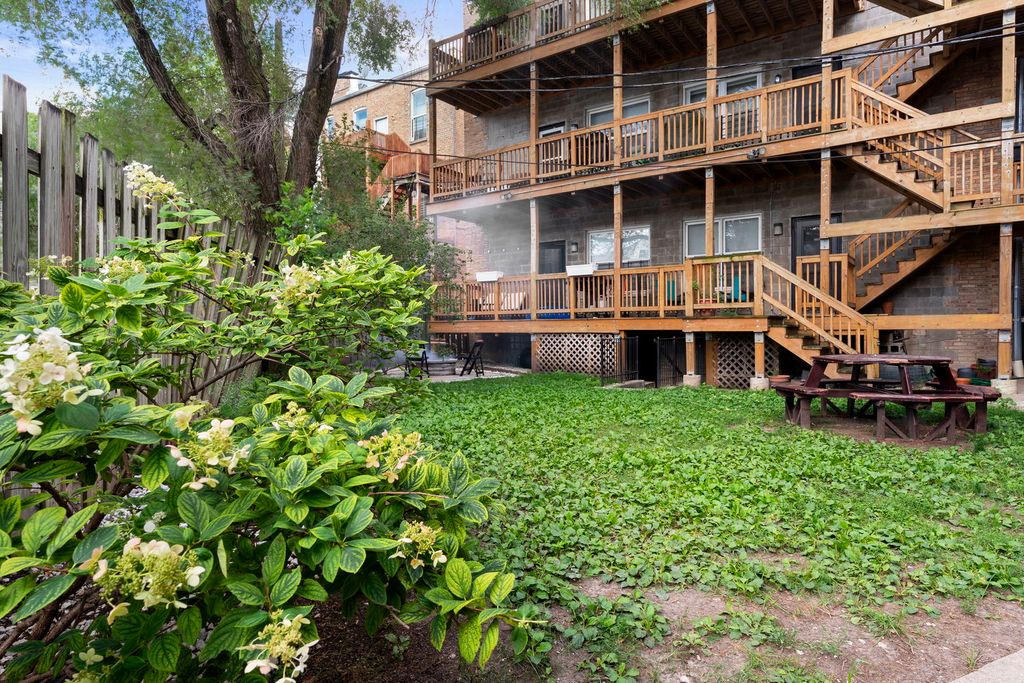 Highest & best offers by Tuesday at 5pm. Seller with a vibe seeks buyer with a dream. Armitage corridor brings life to the Logan Square neighborhood. Wide boulevards, sprawling park space, & a booming restaurant scene draw friends to you. 1st floor walk-up leads to a 1 bed 1 bath home. Inside this previous factory space, the ceilings soar while brick walls both warm & welcome with old world charm. Oversized windows allow sunsets & west views of a 1900's historic architecture. Hardwood floors gleam throughout the living, dining, & kitchen. Fireplace, with custom surround & mantle, has been thoughtfully added along with fresh lighting with dimmers for ambiance. Kitchen welcomes home chefs with new appliances including 5-burner gas stove, venting microwave, French door fridge with ice, & dishwasher. East light with an outdoor view from the kitchen should be on a must-have list. Solid stone & butcher block counters with breakfast bar give the space to prep & entertain. Past the in-unit laundry, bedroom provides 2 closets for wardrobe & vanity. Bathroom has tile to the ceiling in shower/tub combo with window. Updated faucets & fixtures feel fresh, next to linen closet for storage. Back patio is private off kitchen with room for grill storage & furniture. Basement storage is massive with both a window & electric; an artists studio space for the creative type. Back yard has green grass, fire pit, & trees for shade; dog owners rejoice. Parking for $65/month per car with access from back door. Located only 2 blocks from California Blue line train, downtown or O'Hare are only a turnstile away. Proximity to farmers market, Milwaukee Ave, & Palmer Square are so close it should become your new weekly ritual. Everything you need is just outside your door. Explore local gems like Small Cheval, Gretel, Parson's, Lonesome Rose, & Bang Bang pie. Curate the good life. Reach out to see your new space in person. Welcome home!