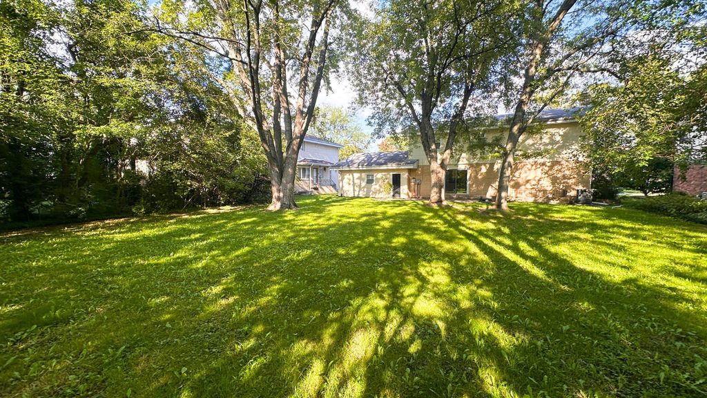This beautifully maintained 4-bedroom, 2.5-bath home offers over 2,100 square feet of refined living space in a quiet, residential neighborhood. The main level features rich dark hardwood floors, a spacious living area with a wood-burning fireplace, and oversized portrait windows that flood the space with natural light. A stylish half bath adds convenience for guests. The updated kitchen is a true highlight-featuring custom cabinetry, a gas cooktop with oven range, dishwasher, and detailed tile backsplash. Dual sliding glass doors lead directly to a lush, tree-lined backyard offering privacy, space, and shade-ideal for entertaining or unwinding. Upstairs, you'll find hardwood flooring throughout, including a large primary suite with its own full bathroom and walk-in closet. Three additional bedrooms share a full hallway bath, and each room includes ample closet space and large windows for plenty of natural light. The finished basement offers even more living space with tile flooring, a dedicated laundry room, extra storage, and a walk-out stairwell leading directly to the backyard. Additional features include a brick exterior, attached 2-car garage, beautifully kept lawn, and mature landscaping in a peaceful, established neighborhood. This home combines style, space, and functionality-perfect for anyone seeking a move-in-ready property with timeless charm and modern convenience.