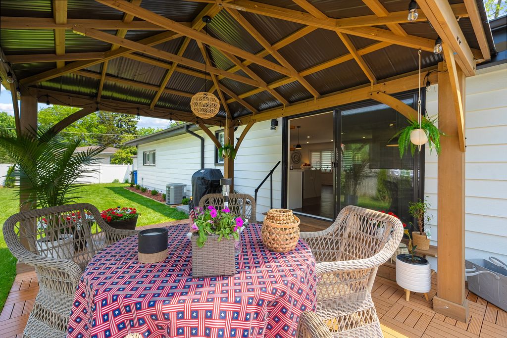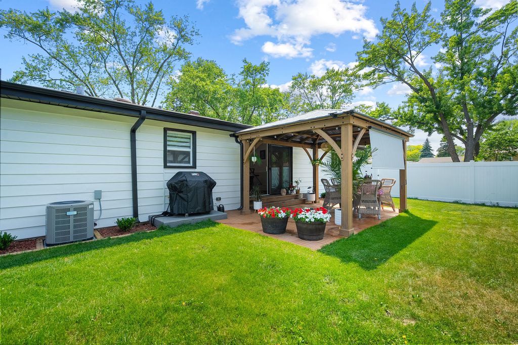 Welcome to this beautifully updated, turn-key ranch in the heart of Mount Prospect! Fully rehabbed in 2024, this sprawling 3 bedroom, 2 bath home was thoughtfully designed with custom details and mindful upgrades throughout. Step inside to find stunning custom woodwork and trim, new hardwood flooring, and an inviting open-concept layout. The showpiece kitchen boasts Samsung Bespoke appliances, modern cabinetry, and a seamless flow to the dining and living spaces. Both bathrooms have been completely redone with spa-like features, including heated flooring and a heated towel rack for everyday comfort. The home's living spaces are designed for both relaxation and entertainment - from the sleek electric fireplace to the built-in speakers and integrated media system that extends outdoors to the fenced backyard. Under the gazebo, enjoy outdoor speakers and plenty of room for gatherings. Practical upgrades include a high-efficiency LG washer/dryer stack combo and an EV charging hook-up in the garage. A new fence (2024) ensures privacy around the corner lot, offering plenty of outdoor living space. Families will appreciate the excellent River Trails Elementary and Middle Schools, with the award-winning John Hersey High School, consistently ranked among the best in the state. Located in the Brickman Manor subdivision, close to shopping, dining, and conveniences - this home has been redone from top to bottom. Simply move in and enjoy!