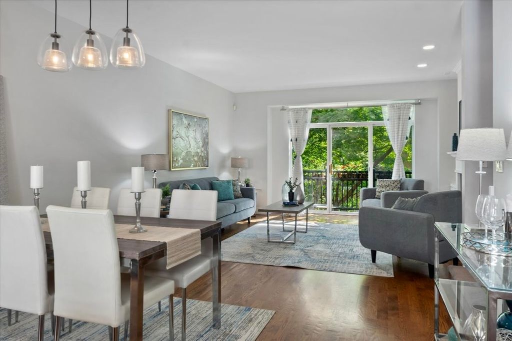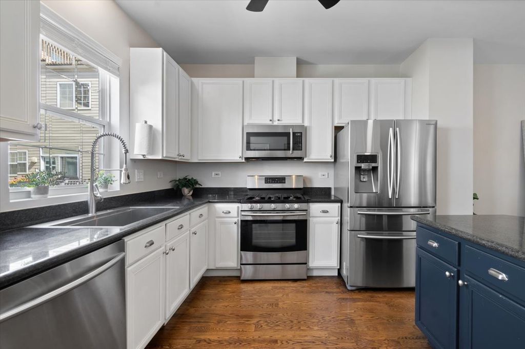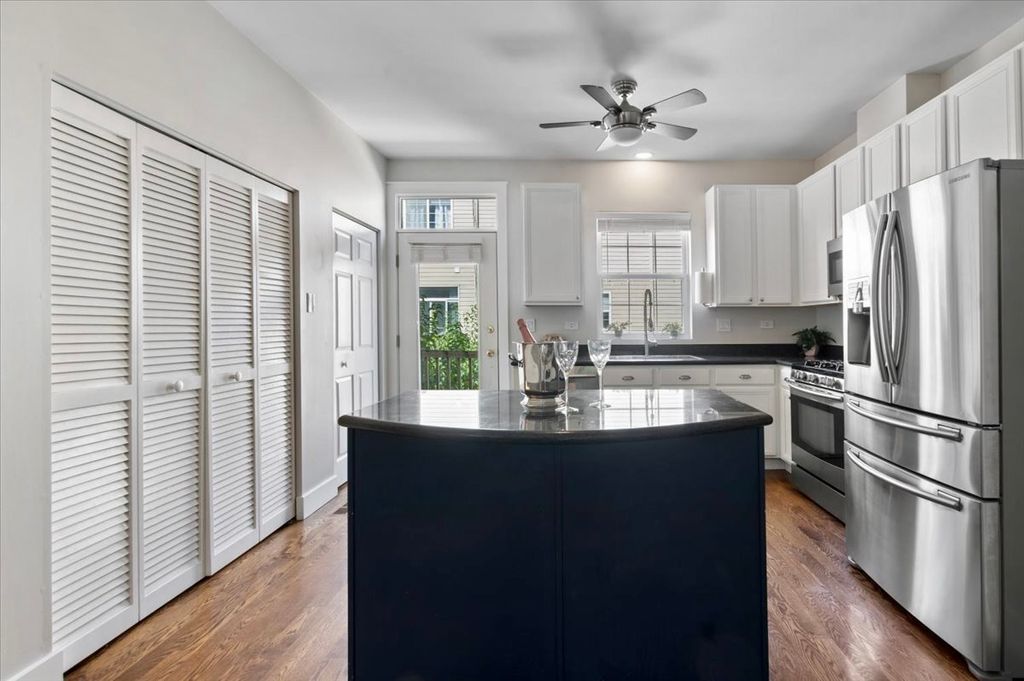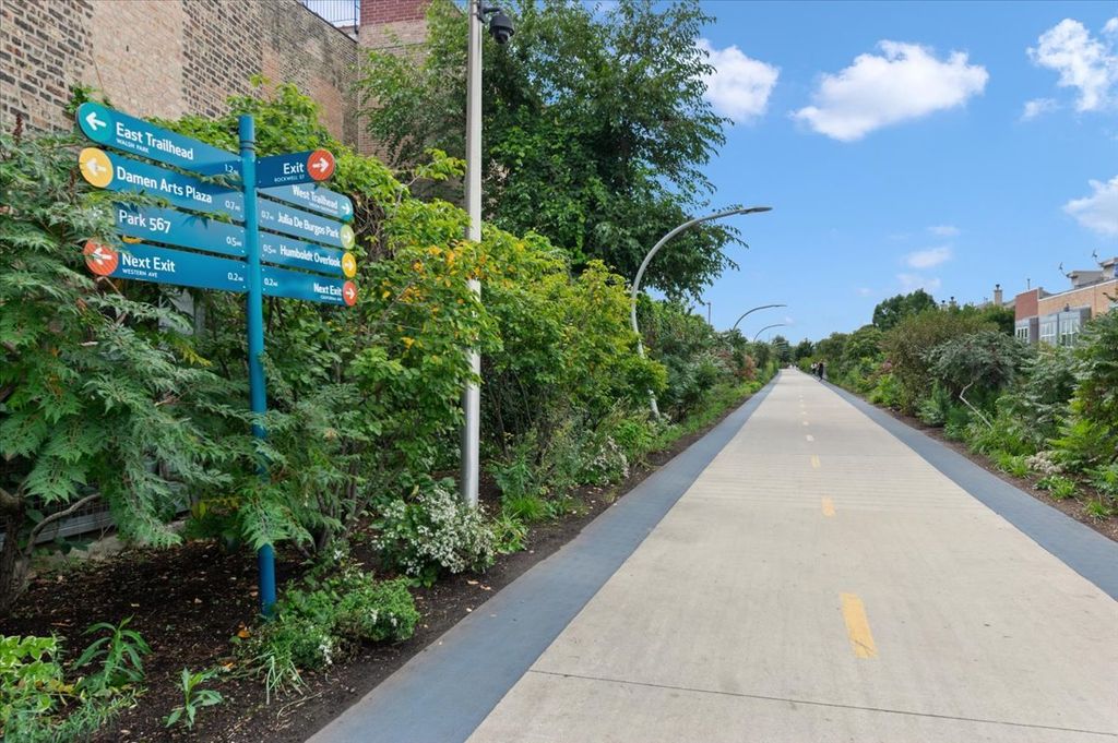 This exceptional Brick Townhouse is perfectly nestled in a picturesque, tree-lined courtyard in one of the most coveted West Bucktown neighborhoods. This charming home offers 4 bedrooms, 3 full bathrooms, 2 Car Attached Heated Garage and charming private outdoor roof space. Upon entering the main level, one's eye immediately gravitates toward the large floor to ceiling windows which frame lovely views of the lush foliage courtyard. The main level is located on the second floor and is brilliantly designed with an open layout, offering a seamless floor plan between the living room, dinning area & kitchen. This layout is perfect for busy family life and entertaining guests. The entire main level has Gorgeous Hardwood flooring, the living room is anchored by a beautiful fireplace (wood burning with gas starter) and built-in cabinetry. Picture cozy winter evenings by the fireplace, sharing laughter and friendly competition over a board game. The kitchen features an island with bar seating, stainless steel appliances, granite countertops, stainless steel sink with large window above pouring natural sunlight into the home. In addition there is a spacious pantry closet with additional storage, adjacent outdoor balcony for grilling and laundry closet area with large side by side washer and dryer. The dining area is ideally located in between the kitchen and living room for easy access. This home's third level has an ideal floor plan consisting of the primary en-suite bedroom, another large bedroom, full bathroom and a linen closet. A true private sanctuary, this tranquil primary suite offers a retreat of relaxation. A large window overlooks a gorgeous tree, inviting nature in and filling the space with serene light. Additional features include, Vaulted ceilings with a ceiling fan, 2 separate closets, a private spacious bathroom offering large sink cabinetry with 2 sinks, generous cabinet storage space and a deep bathtub; the perfect place to to unwind & relax at the end of the day. The second bedroom is also large and spacious enough for 2 people to share this room. A bright & colorful custom wall is sure to be loved by many. There is a large wall of closets, with separate doors so each person could have their own separate closet space. Directly next door to this bedroom is a full bathroom with large sink vanity and a linen closet just down the hall. The top floor level is currently used as a family room/office, the ideal place to relax, work or entertain with direct access to your private roof deck. This deck is the perfect space to have a BBQ and spend relaxing time with family & friends. Brand NEW Flat roof was just installed. The first level of this home offers an ideal home office or extra bedroom space. This level also has a fully renovated bathroom, closet space and 2 car attached garage with storage space. This home has dual zoned HVAC with Nest. This West Bucktown home is in a Fabulous Location and literally just steps from the Bloomingdale 606 Trail (Bike & running path). The Lucy Flower Park is just across the street on the corner, a beautiful playground where neighborhood children love to get together and have fun! Close to Parks, Public Transportation, within minutes of the Western Blue Line, there are many restaurants & cafes to enjoy nearby as well as coffee shops, Small Cheval, Margies Candies, Cermak Produce, Starbucks and more! Impeccably designed, this home beautifully blends modern luxury and flexible living space, perfect for today's lifestyle. A true sanctuary, ideal retreat for city living at its best!