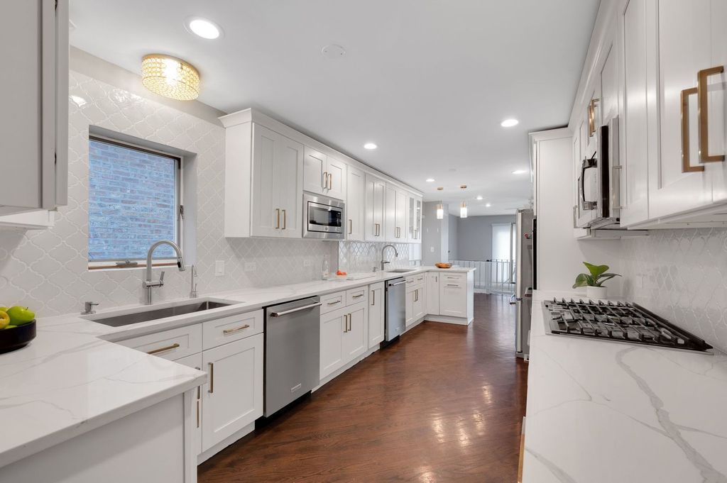 Beautifully maintained West Rogers Park home with spacious brick addition offering 5 bedrooms and 4.5 baths. The second floor features 5 bedrooms, including a primary suite with walk-in closet and full bath, plus ample closet space throughout. Main level highlights include hardwood floors, formal dining room, powder room, large family room, and a bright kitchen with generous cabinet and counter space, high-end appliances, and eat-in area. Two separate basements provide versatile options with a recreation room, extra bedroom, office/guest space, and abundant storage. Mechanical updates include dual HVAC systems, 200-AMP electrical, sump pump, water heater pump, and alarm system. Step outside to a low-maintenance, cemented backyard-perfect for grilling, gatherings, or simply relaxing. With its generous space, thoughtful updates, and prime West Rogers Park location, this home offers comfort, functionality, and room to grow.