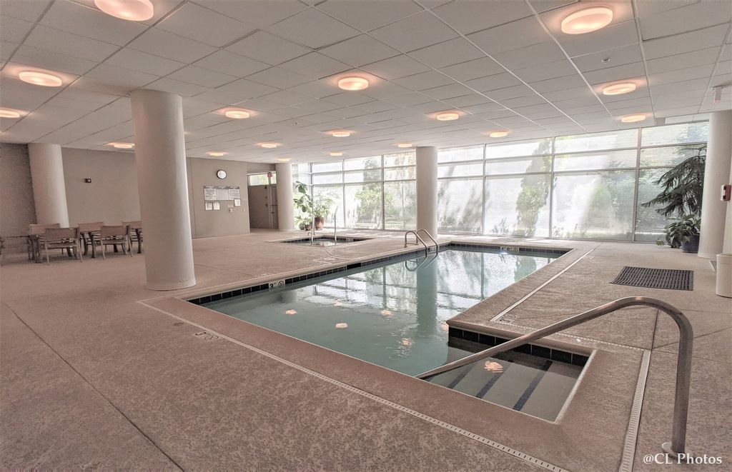 Fantastic 2 bed 2 bath South facing unit in Downtown Evanston. This southern facing unit has exceptional sunlight throughout. Newer laminate floors and light fixtures have been updated over the last several years. Stainless steel appliances throughout with the microwave brand new in 2019 and LG ThinQ Fridge brand new in 2021. Kitchen faucet, backsplash, under cabinet light in 2020. All the bathroom faucets, showerheads, and light fixtures have also been replaced in the last couple years. You can also control the homes temperature with the Google Nest Smart Thermostat. There is a full size Murphy bed in the 2nd bedroom that is included. The massive master bedroom can fit an office, couple dressers, and reading area. Professional closet system installed in the master. Full size washer and dryer included with built in additional storage. Large Balcony and floor to ceiling windows that allow the indoor/outdoor space to feel exceptionally open. Heated Indoor Garage Spot & Storage Unit INCLUDED. The garage spot is a premium spot next to the building entrance. Assessments includes gas, water, High Speed Internet, and Cable. Everything included but electricity! Indoor Pool, Receiving Room, & Small Gym also included. Building has updated key fob entry security system and it can be controlled also by owners' phones now. Fantastic location in the true heart of downtown. Less than 2 blocks away from the Metra, Purple Line Train, & Whole Foods. Also within blocks of tons of restaurants, coffee shops, & the lake. At this time we are only able to accept cash offers. If a buyer has interest they can also use a private lender who has closed multiple deals in the building.