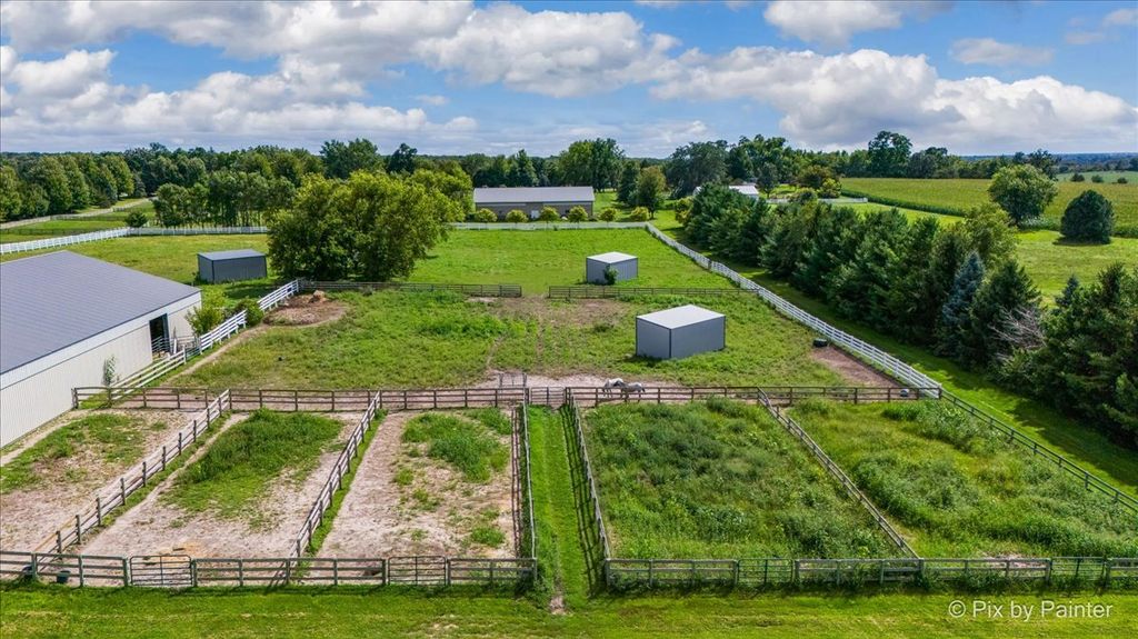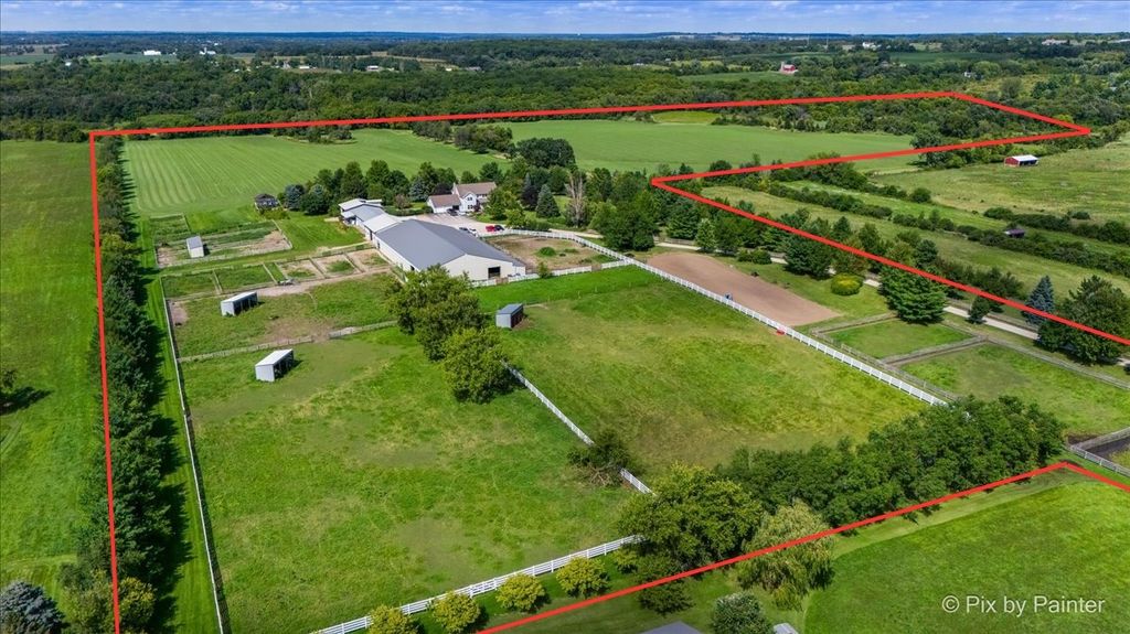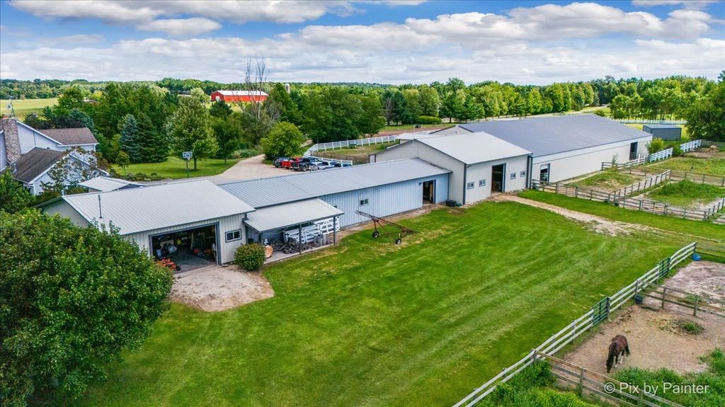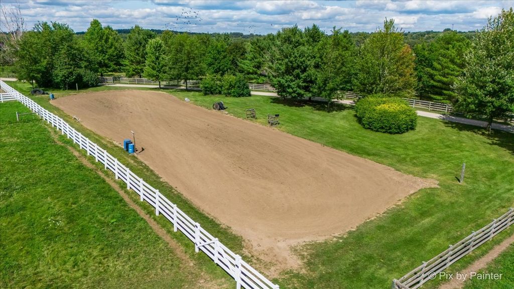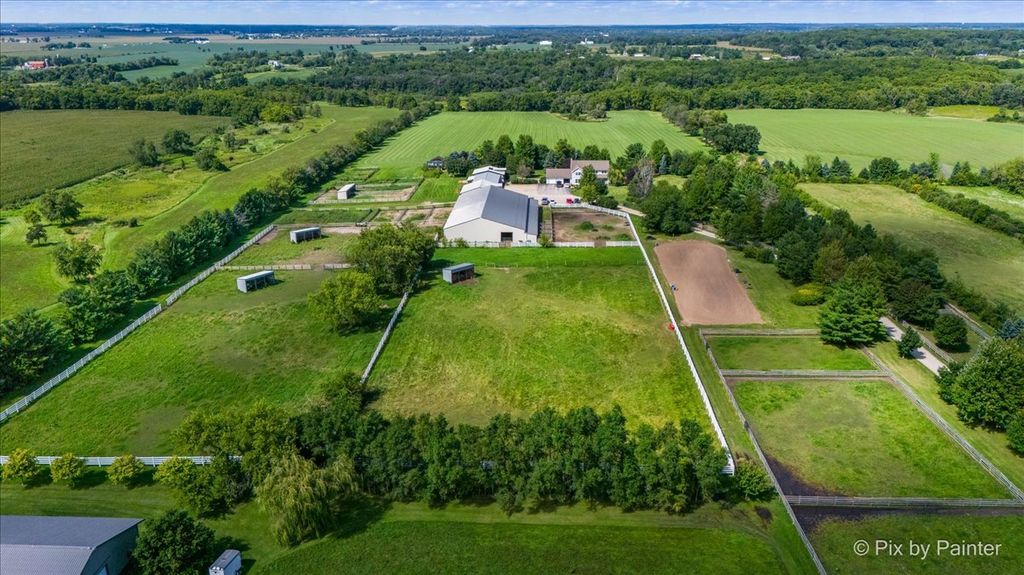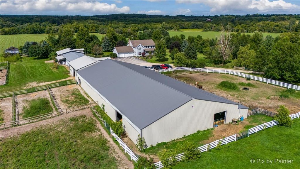 Opportunity abounds for the equestrian enthusiast on this 64 acre farm!! Currently operated as an equestrian boarding facility & a luxury single family home, the gently rolling topography of this farm, located very near to the Wisconsin border, is an ideal backdrop for your country estate! The 4-bedroom & 3.5-bathroom home with a walk-out lower level offers ample room for your family and for entertaining family & friends. The home features hardwood oak floors, Subzero and Wolf appliances, a loft in the master bedroom & heated floors in the master bath. The lower level includes a pizza oven, wine room and access to the patio where an area is set up for a hot tub for those evenings watching the sunset over the countryside. Spend your days in the greenhouse where you can step outside to the outdoor kitchen complete with granite countertops and a fireplace - all overlooking the rolling hills. When it is time to do a little ride step into one of the 20 stalls and grab your favorite horse and head to the 160'x93' indoor riding arena complete with footing consisting of a clay base & mix of Mason and torpedo sand. Want to ride at night - the arena has LED lighting. Your horses will have plenty of room to roam in one of 26 pasture/turnout areas on property and also the comfort of oversized stalls - some with turn-outs and some with Stable Comfort stall flooring and custom 3" rubber interlocking pavers over limestone. Need to repair a tractor or horse trailer - the heated shop is the space for that. Income opportunity comes in the form of boarding income and farmland income - or grow your own feed for the horses. The potential of this property is endless!!