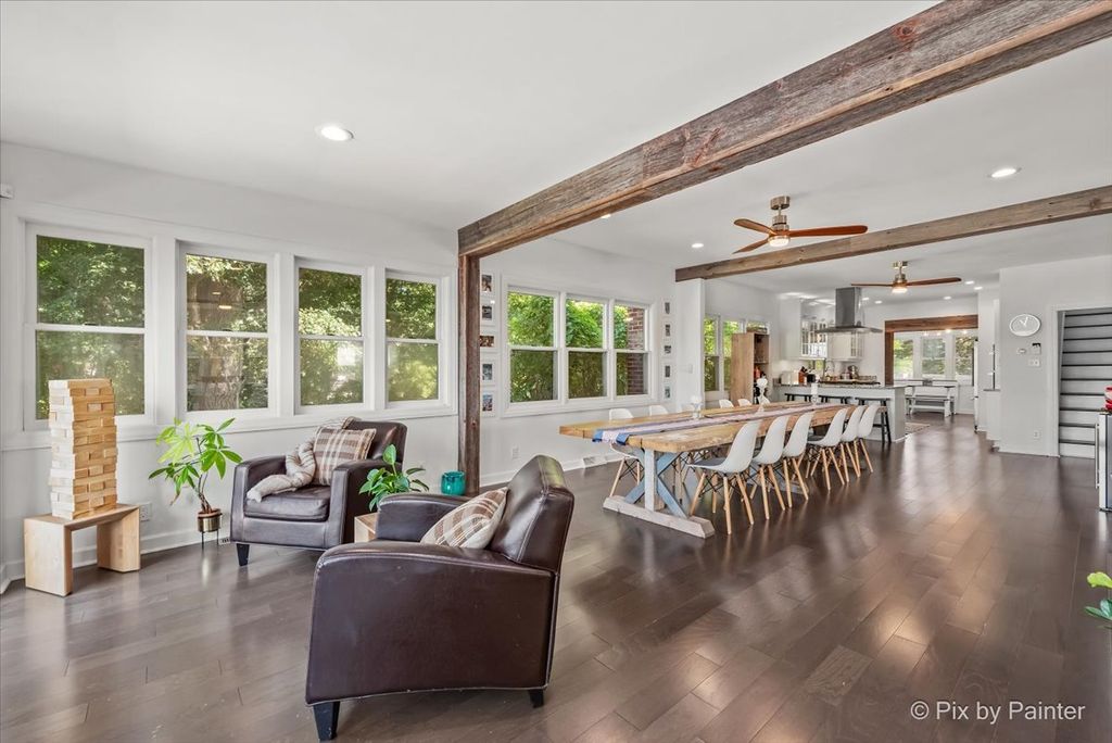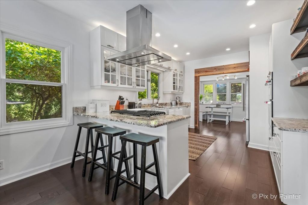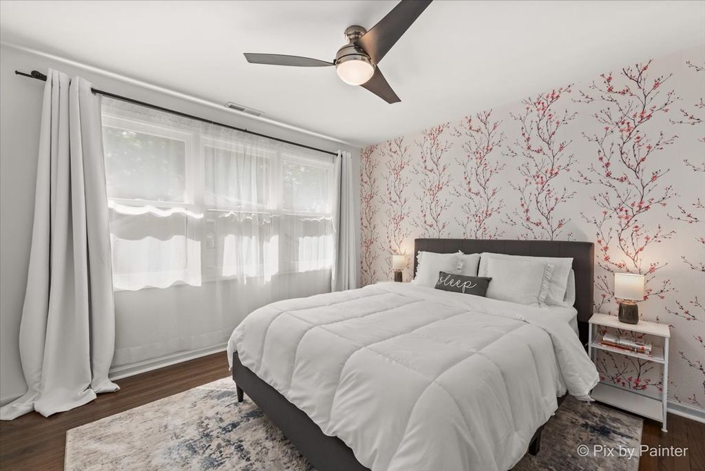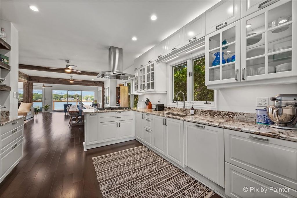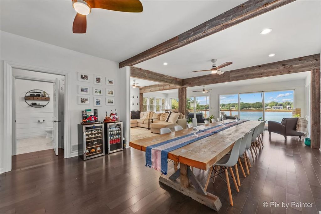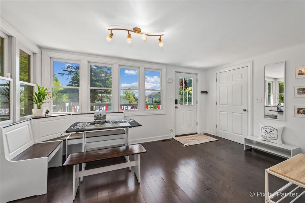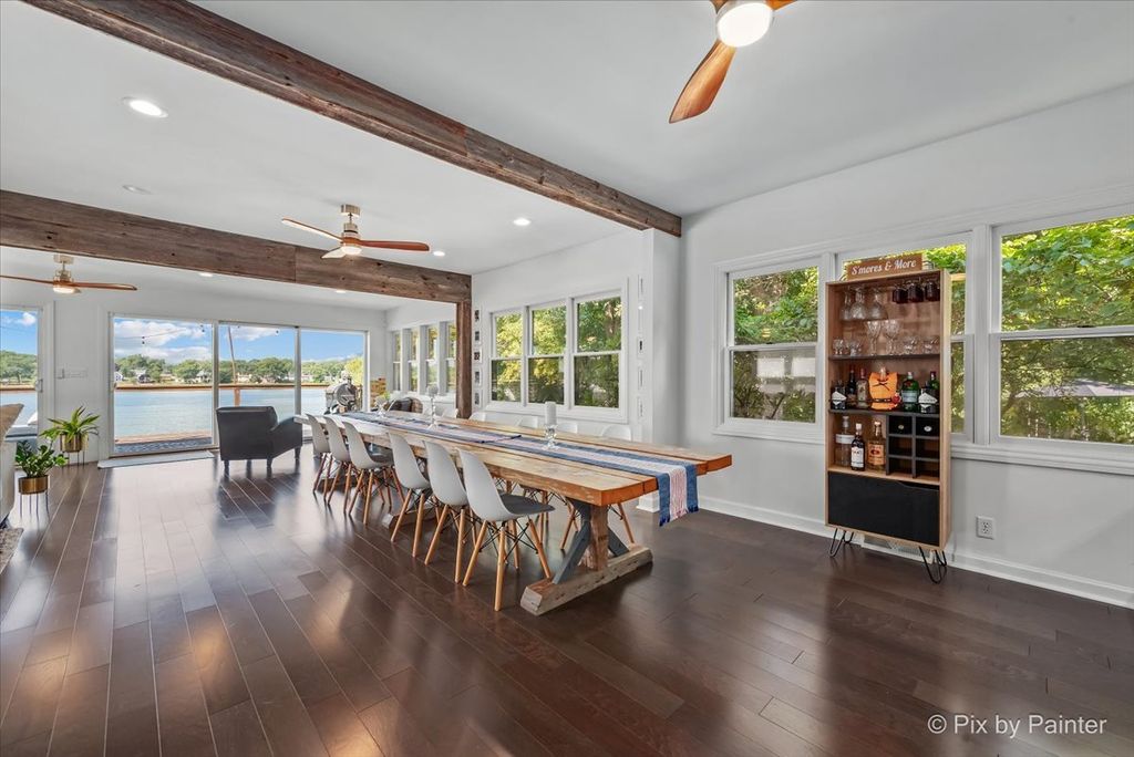 Lakefront Living on Miltmore Lake! Welcome to this beautifully updated 5-bedroom, 2-bath home with stunning western views and direct access to sought-after Miltmore Lake in Lake Villa. From the moment you step inside, the spacious foyer entry and engineered hardwood floors set the tone for the thoughtfully updated interior. The kitchen boasts crisp white cabinetry, granite countertops, stainless steel appliances, and a breakfast bar that flows seamlessly into the newly renovated great room space complete with charming exposed beams. Telescoping sliding doors stretch across the back of the home, offering incredible lake views and access to a 30x12 deck-perfect for entertaining or simply soaking in the scenery. The inviting living area features built-in shelving and a cozy gas fireplace, and connects to the large dining room for effortless gatherings. Two bedrooms and a full bath with a walk-in shower complete the main level. Upstairs, the primary bedroom with walk-in closet offers breathtaking lake views with its own expansive balcony. Beautifully refinished oak hardwood floors flow throughout the second level, where a shared full bath serves the primary and two additional bedrooms. An unfinished basement provides ample storage or potential for future living space. Outside, enjoy your own private retreat with a pier, beach, and direct access to this motorized lake. Mature trees surround the property, adding privacy and natural beauty. A detached 2.5-car garage completes the package. Updates include- A/C 2020, furnace 2021, roof 2023 and tankless water heater 2024. This is more than a home-it's a lifestyle. Imagine boating, fishing, and lakefront sunsets all from your own backyard!