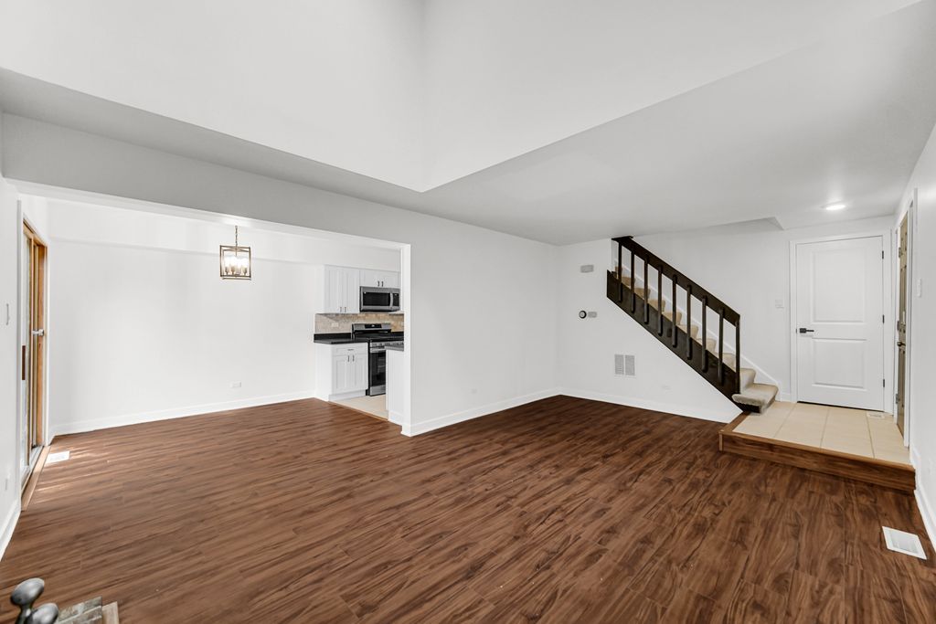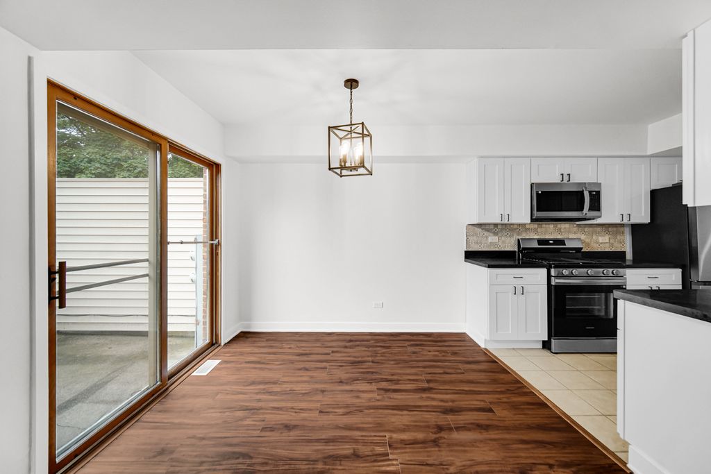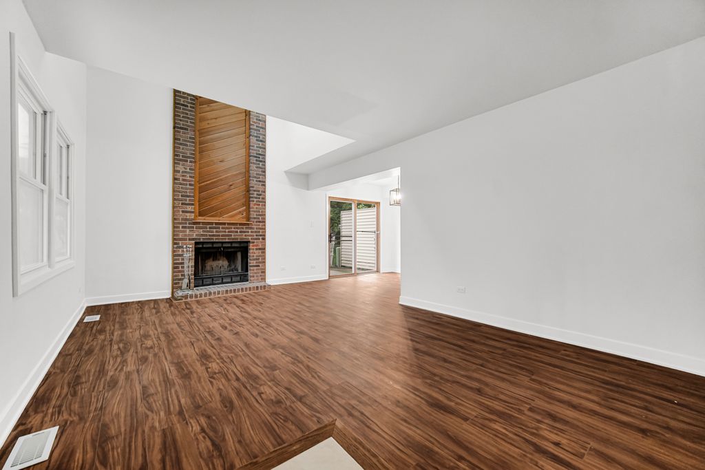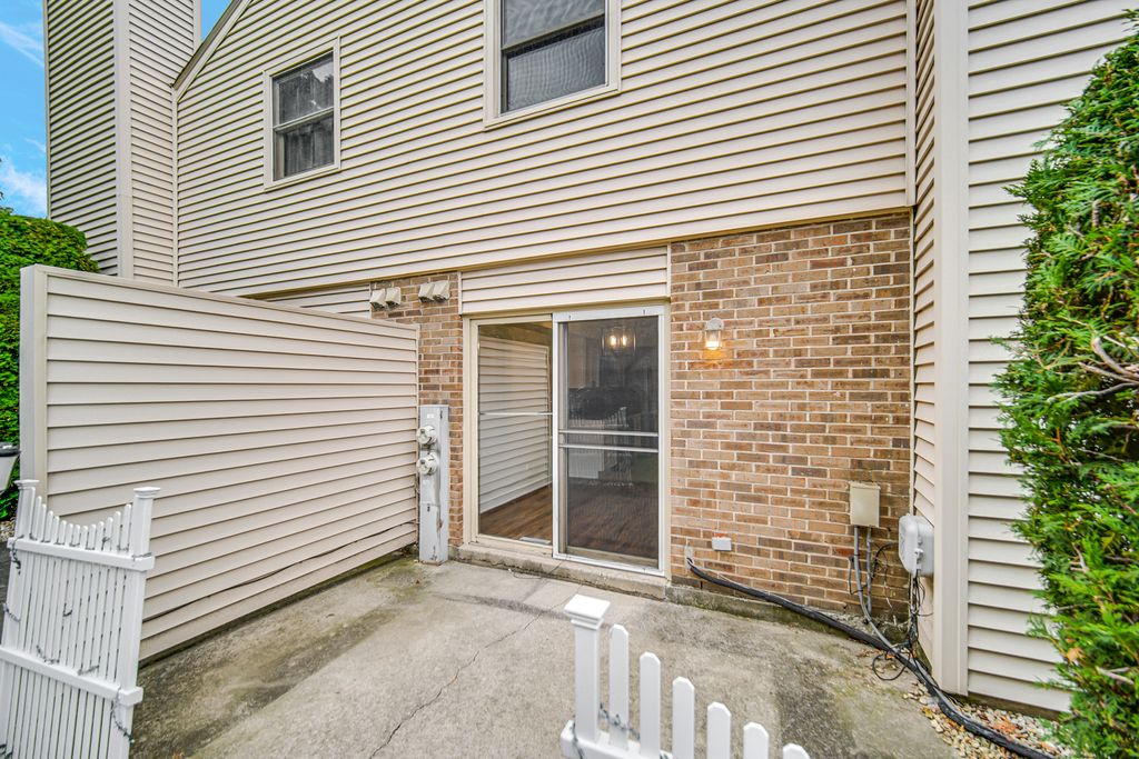 Move-in ready and beautifully remodeled! This end-unit townhome in Village Square offers three bedrooms, two bathrooms, and two stories of updated living space. Step inside to find brand-new high end wood vinyl flooring, leading to a stunning two-story fireplace. A freshly updated kitchen with new cabinets, new appliances, and a stylish backsplash, along with fully remodeled bathrooms. Freshly painted throughout, added lighting, and thoughtful updates make this home shine. The generous master bedroom features a cathedral ceiling and walk-in closet, while the two additional bedrooms are also spacious and filled with natural light. Throughout the home, you'll enjoy generous amounts of lighting and an open welcoming feel, thanks to the home's desirable end-unit location. Convenience is key with first-floor laundry and an attached one-car garage. Enjoy quiet evenings on your private patio, located just off the dining and shopping area. Set on a tree-lined street, this townhome is just minutes from shopping, dining, and easy highway access, and is located within a top-rated school district. Don't miss this chance to own a home that's truly move-in ready!