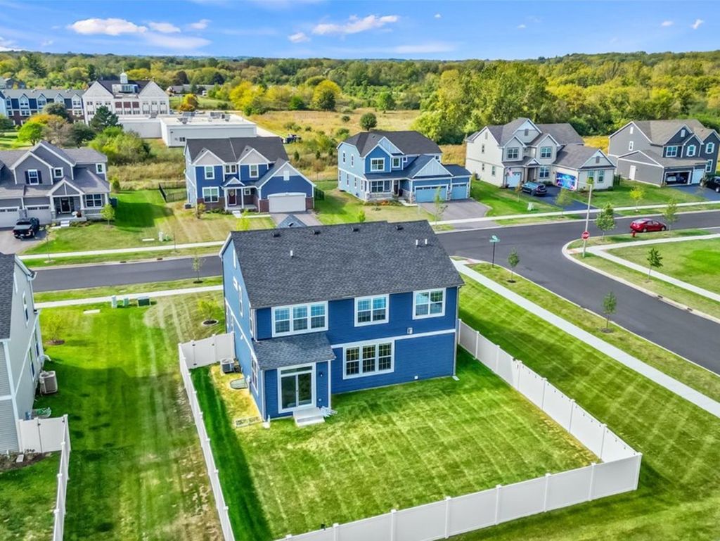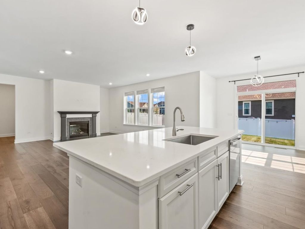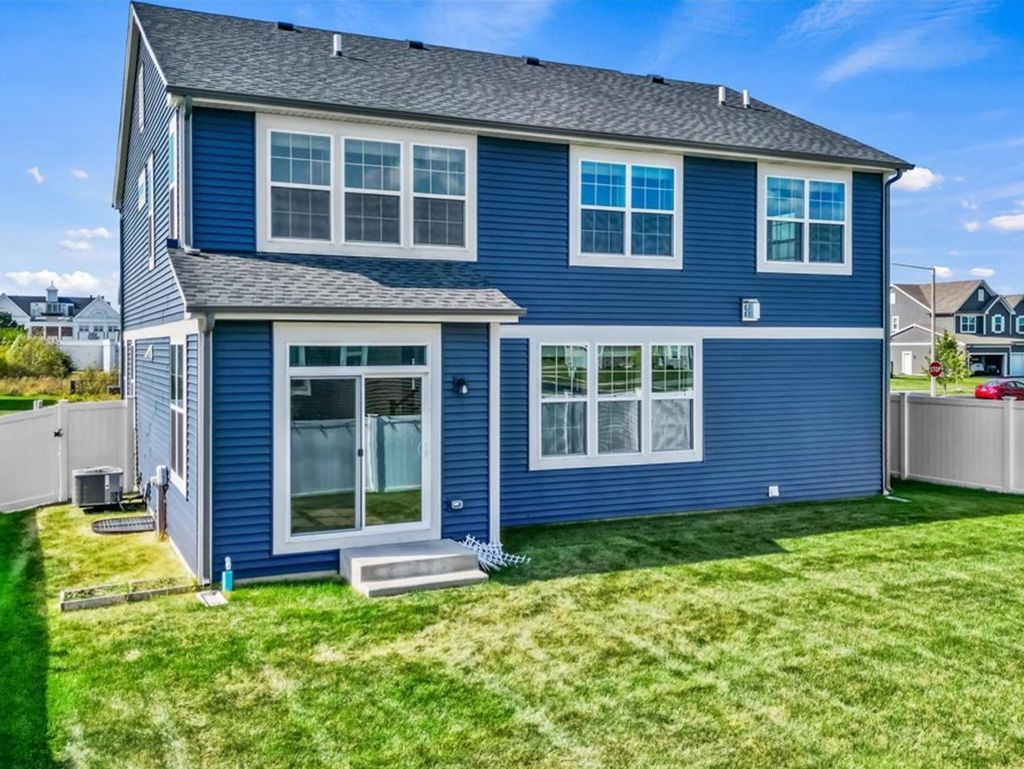 Welcome to 1149 Brighton Circle in Crystal Lake's sought-after Woodlore Estates, where modern design meets timeless comfort and energy-efficient living. Built by Lennar in 2024, this impressive three-bedroom, two-and-a-half-bath home offers the perfect balance of luxury and livability, combining new-construction quality with warmth, style, and a layout that supports the way you live today. Every element-from its open main-floor design to its flexible spaces and thoughtful energy features-has been crafted to create comfort, connection, and confidence for years to come. Step inside and discover an open-concept floor plan filled with natural light and modern finishes. The kitchen is the heart of the home, featuring white shaker cabinetry, gleaming quartz countertops, a large center island with sink and dishwasher, stainless steel appliances including gas range and refrigerator, subway tile backsplash, and pendant lighting. It flows seamlessly into the dining and family room areas, making everyday living and entertaining effortless. The family room features rich hardwood floors, recessed lighting, and a gas fireplace with stone surround and dark wood mantel, creating a welcoming atmosphere for both quiet evenings and social gatherings. A versatile flex space on the main level adds even more functionality, offering the freedom to adapt as your needs change. With its bright windows and quiet location just off the main living area, it can serve as a home office for remote work, a study space, or a cozy retreat for reading and hobbies. This room brings a sense of flexibility that today's homeowners value-supporting productivity during the day and comfort in the evening. Upstairs, the primary suite is a private retreat designed for relaxation, featuring an ensuite bath with dual vanities topped with quartz, gold faucets, a walk-in glass-enclosed shower with tile surround, and a transom window that bathes the space in natural light. The walk-in closet with a window and ample shelving adds both light and organization. Two additional bedrooms are spacious and bright, each with carpeted floors and generous closet space. A second-floor loft provides another flexible area-perfect for a media zone, home gym, or play space. The laundry room on this level includes a sink, shelving, and modern washer and dryer, bringing both function and convenience to daily routines. Every detail reflects the craftsmanship and efficiency expected in a new Lennar home. Energy-saving windows, insulation, and HVAC systems help keep temperatures consistent year-round while lowering utility costs. These features create a comfortable living environment that is both eco-friendly and financially smart. The unfinished basement extends the home's potential, offering an open layout with plumbing rough-ins, HVAC access, and insulated walls-ready for future expansion as a recreation room, studio, or guest suite. Outside, the home exudes curb appeal with blue vinyl siding, a gabled roofline, and landscaped beds framed by mulch and mature plantings. A welcoming front porch and attached two-car garage enhance both style and function. The fenced backyard offers peace and privacy with a sliding-door walk-out to the patio-perfect for morning coffee, summer barbecues, or watching sunsets over the quiet tree-lined neighborhood. Well-maintained sidewalks and green spaces throughout the community encourage evening strolls and connection with neighbors. Living in Woodlore Estates means more than owning a home-it's a complete lifestyle. The community is known for its friendly atmosphere, walking trails, scenic ponds, and open green spaces that promote well-being and outdoor enjoyment. Nearby parks, pickleball courts, and local restaurants make it easy to relax and stay active. You'll also appreciate proximity to top-rated schools, shopping centers, healthcare facilities, and transportation options. Crystal Lake's Three Oaks Recreation, Metra station, and vibrant downtown.
