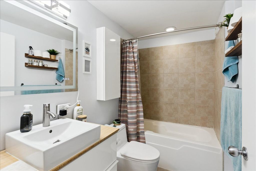 Panoramic city-view corner loft in the heart of Edgewater. The window-wrapped living/dining room showcases wide city vistas and opens to a large private balcony. ~10' concrete ceilings and hardwood floors throughout set an airy, modern tone. Sleek kitchen with 42" maple cabinetry, granite counters, stainless-steel appliances, and an island for prep/seating. Spacious loft-style bedroom with excellent closet space and overhead storage. Spa-style bath with marble vanity and tub/shower combo. In-unit laundry included. Full-amenity elevator building with a fitness center (lake views), expansive roof deck with lounge seating & fire pit overlooking the skyline, party room, dog run, bike storage, receiving room, and on-site management. Prime location near Andersonville, Hollywood Beach, Whole Foods/Mariano's, LA Fitness, and Bryn Mawr dining-one block to the Bryn Mawr Red Line. Assessments include water, gas, and internet. One parking space and a storage cage are included in the price. Tenant occupied: leased through June 2027 at $2,500/month.