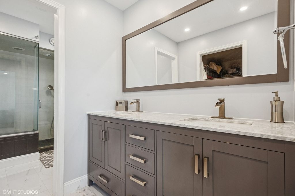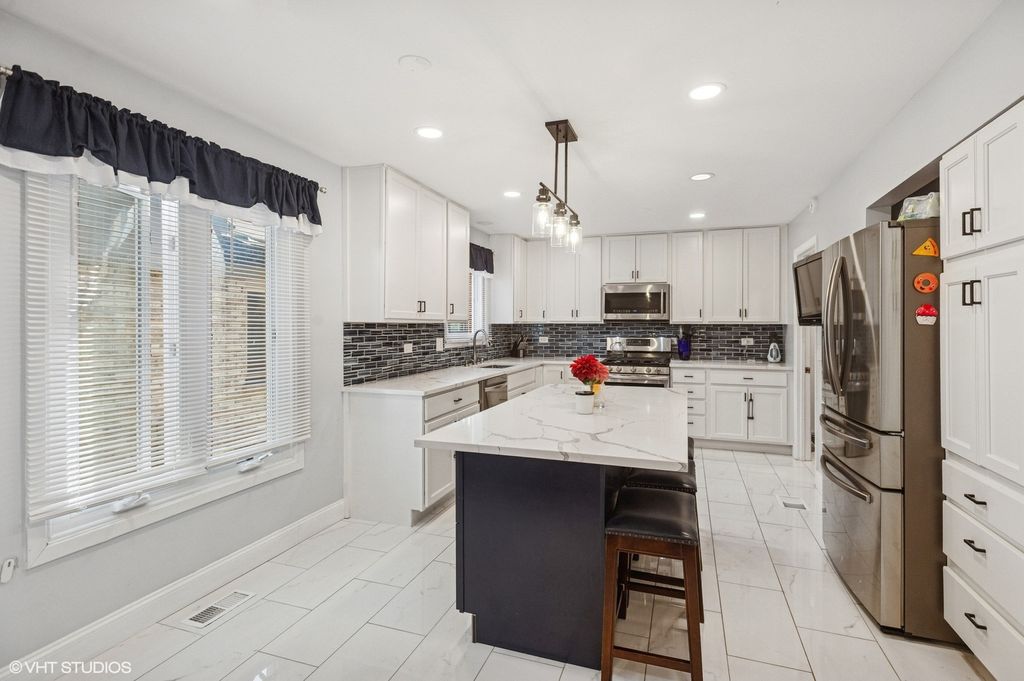 Welcome to this truly stunning and professionally crafted home in the sought-after Westmoreland subdivision of Skokie. This 4-bedroom, 2.1-bathroom dream home offers a rare opportunity to join a cherished community known for its limited availability. Step inside to discover a generous 4,146 total sf of thoughtful living space, including 3,096 sf above ground and an additional 1,050 sf in the finished basement. Meticulously renovated in 2021, this stunning kitchen is truly the heart of the home, complete with elegant white shaker cabinets, sleek quartz countertops, and state-of-the-art stainless-steel appliances. Retreat to the primary suite, an unparalleled oasis, with a large walk-in closet and a private en-suite bathroom featuring a step-in shower. The true crowned jewel and rarity in the Skokie area is the impressive 433-square-foot wrap-around terrace off the primary bedroom, offering a breathtaking view of the neighborhood-an ideal spot for morning coffee or evening relaxation. Three additional spacious bedrooms, each with ample closet space, including two walk-in closets, provide flexibility and privacy for family and guests. The finished basement offers a versatile rec-room, which can easily be transformed into two functional areas such as a gym, office, or playroom. Outside, the charming patio and private backyard allow you to enjoy the serenity you've always wanted. Additionally, an extra-deep 2-car garage provides ample storage. This home is a welcoming haven, ready to create cherished memories for its next fortunate owner. Don't miss the chance to make it yours!