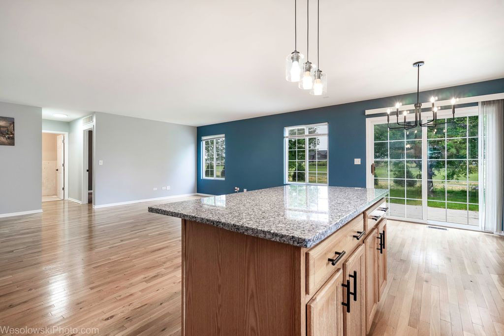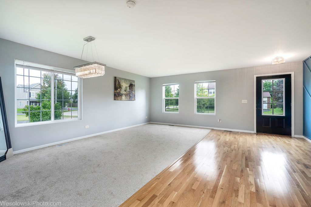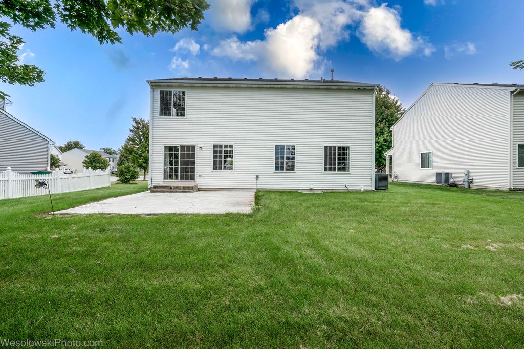 Welcome to your dream home in Plainfield! This spacious 4-bedroom, 2.5-bath home with nearly 3,000 sq. ft. offers modern comfort and convenience. The open-concept main floor features a bright kitchen with new granite countertops, stainless steel appliances, updated lighting, and a first-floor office/den-perfect for remote work. Upstairs, the primary suite includes a private bath with a 60-inch shower, and the remodeled hall bath adds fresh style. Four large bedrooms provide plenty of space, plus a versatile bonus room for a nursery, gym, or second office. Enjoy summer on the concrete patio, with a walking path just beyond your backyard. The dry basement adds room for play, storage, or fitness. Recent upgrades include a new roof, front door, and garage door for peace of mind. Located in a welcoming neighborhood with excellent schools (Plainfield North High School) and access to a private residents' pool, this move-in ready home has it all.
