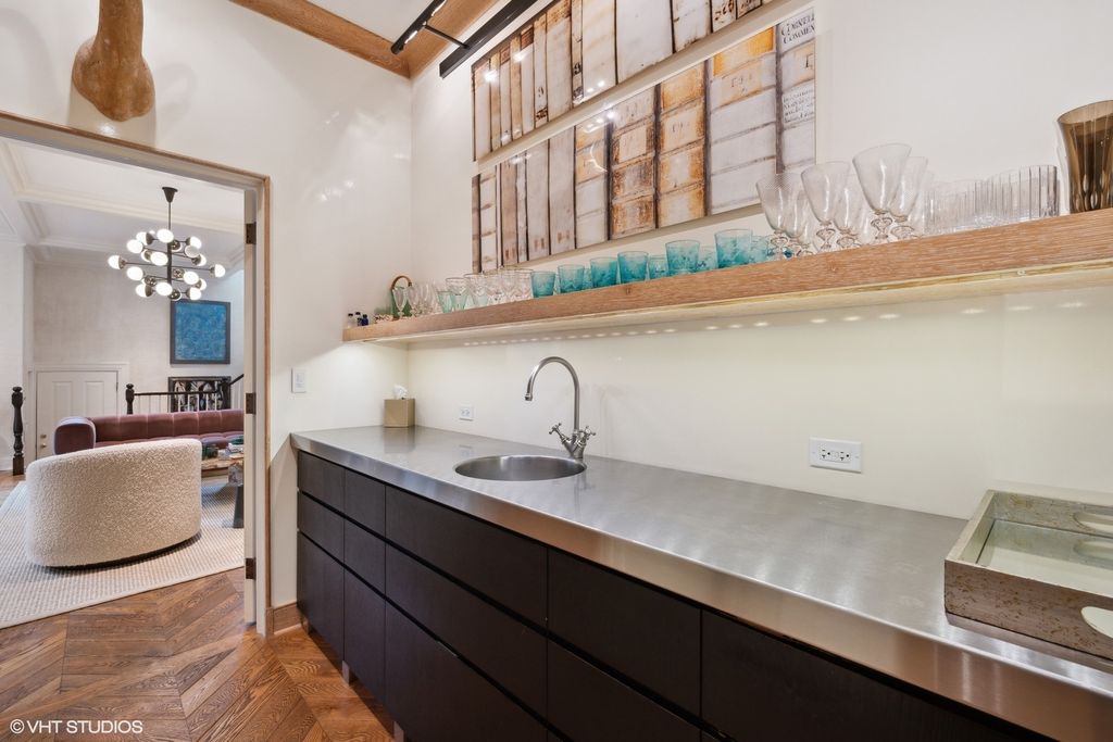 This East Lincoln Park crown jewel marries history and architectural significance with luxurious interiors. The home is located on a double 50 x 123.4 lot. This Italianate-style residence at 1964 North Burling was originally built in 1883 as a single-family home on a former nursery and horse truck farm. It is part of the Sheffield National Register Historic District and, significantly, is rated Orange in the Chicago Historical Resources Survey. The current owners meticulously restored this limestone-and-brick home with successive renovations by Bulley & Andrews in the subsequent years to maintain its impeccable condition. The gorgeous decor, designed by Alessandra Branca, was featured in House Beautiful and Veranda magazines and may be sold vacant or fully furnished. Stepping through the front double doors, you'll find French maple chevron floors, working marble fireplaces, and rooms lovelier than the last. The gourmet kitchen features cerused white oak cabinetry, marble countertops, and top-of-the-line appliances, including a Thermador double oven and Sub-Zero refrigerator. A spacious butler's pantry with a stainless-steel wet bar adds an extra layer of convenience. The attached garage, with a side door entrance, offers direct access to the home and extends its length. A terrace above the garage can be reached from the family room and leads to a beautiful side yard and basketball sport court-ideal for both relaxation and recreation. Double staircases connect the upper and lower levels, creating excellent flow throughout the home. The spacious primary suite includes a large dressing room, double walk-in closets, and a luxe bath with marble and silver finishes. Two additional bedrooms and a convenient laundry room complete this level. The third floor is an entertainer's dream, featuring a penthouse lounge with a full working bar and a second terrace for the perfect outdoor retreat. Another bedroom and full bath provide flexible space for guests or a private oasis. The lower level was designed with both comfort and entertainment in mind, offering heated floors, a fifth bedroom or office, a media room, a recreation room with built-in desks and bookcases, a wine cellar, and a steam/infrared sauna shower. Additional details and upgrades are available in a fact sheet upon request. Notably, there is potential for elevator installation on the southeast corner of the home, and square footage could be expanded if desired. The property currently includes a two-car attached garage plus a two-car parking pad. Enjoy tree-lined, quiet walks along some of Lincoln Park's most beautiful blocks, as well as the convenience and energy of shops and restaurants in the prime Armitage and Halsted area. A truly breathtaking home in the perfect location!