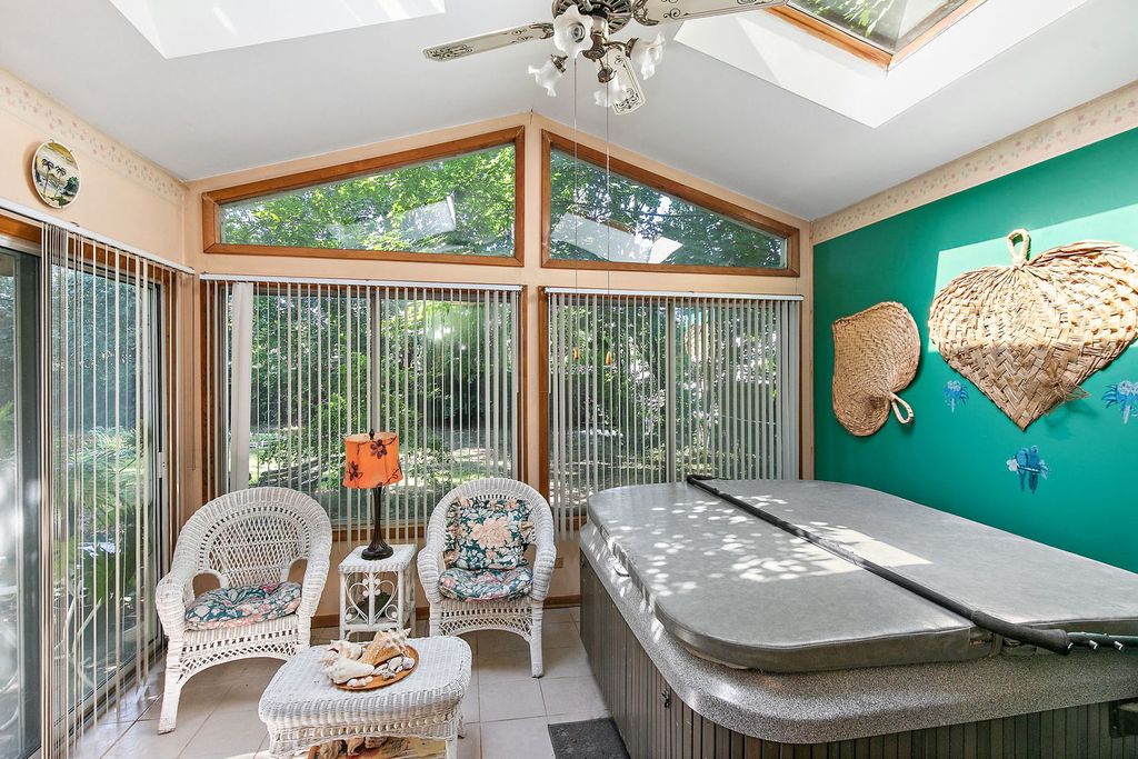 Excellent location with a view of Bakers Lake on a quiet dead-end street. Lots of privacy yet walking distance to award-winning schools, parks, restaurants, downtown Barrington and Metra station. The main floor has three bedrooms with a primary bedroom that leads to the peaceful four-season sunroom. The great room was a wonderful addition and includes a fireplace, floor-to-ceiling windows, a cathedral ceiling, and a door to the patio and beautiful, private fenced yard. Hardwood floors on the main floor and all bedrooms. The custom-built second floor was added in 2005. This has two more bedrooms, a great room, a full kitchen, and a full bath. The slider leads out to a newly redone deck with a view of the lake. All new windows throughout the home in 2008. Lots of storage in the three-car garage and two attics. New roof (2018), exterior painted(2018), appliances (2024), Low taxes. See list of updates.