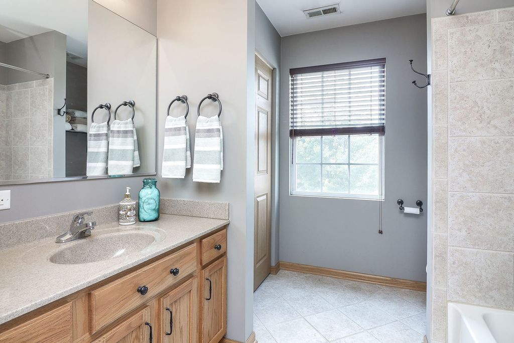 Spacious two-story freshly painted home in the desirable Bloomfield West subdivision featuring 3 bedrooms plus loft, 2.5 baths, and over 2,500 sq ft of living space. Step into the soaring foyer with 9-ft ceilings and newer wood laminate flooring that flows throughout, setting the stage for a bright, open layout. The elegant dining room with updated lighting and the inviting living room with built-in bookshelves create a warm welcome The kitchen boasts 42" cabinets, large island, tile backsplash, plant window, pantry, and flows into the eating area. Oversized family room with stone fireplace great for entertaining. A private office, and laundry room with sink and cabinets complete the main level. Upstairs offers a versatile loft and three spacious bedrooms, including a primary suite with updated flooring. Bedroom 3 includes custom desk and built-ins, perfect for a craft or sewing space. Full unfinished basement provides endless possibilities. Outside, enjoy the brand-new 41x16 composite deck, 2 gazebos, storage shed, and fully fenced corner lot. Recent updates include Trane furnace (2024), hot water heater (2025), sump pump (2025), and new garage door. Additional community features: parks, tennis courts, and trails. Convenient location near schools, dining, shopping, and expressways.