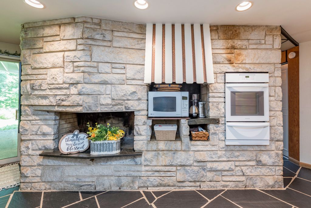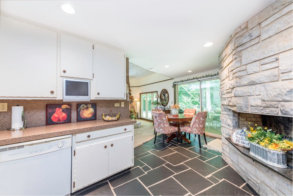 Very unique Ranch home overlooking the Ravine. The home features 3 bedrooms, one full bath, one half bath, and a quarter bath with a walk-in shower. A third bedroom is currently utilized as a TV room. The kitchen has granite Countertops and slate flooring. 2 fireplaces: kitchen wall, and a living room fireplace. The Sellers relocating and are offering to leave some furniture for the future buyer. A list of these items can be found in the Documents tab. Given its unique features and charming design, this home would also make a very popular AirBnB rental.