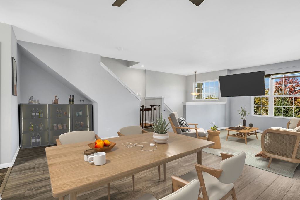 PRICE REDUCED! While the home has been well cared for, it could benefit for some smart renovations/improvements to make it shine - a great opportunity for buyers or investors to add finishing touches and build quick equity. Spacious 3BR/2.5BA Wilmington model townhome in Symphony Meadows with nearly 1,900 sq. ft. of finished space. Open-concept main level with living/dining combo, eat-in kitchen, and private balcony with no buildings directly in front. Primary suite with full bath and large closet, plus finished lower-level flex room ideal for office or playroom. Lightly furnished as sellers are moving out. Seller is willing to leave all the mounted TVs.! HOA covers lawn care, snow removal, and exterior maintenance. Close to parks, schools, shopping, and major roads.