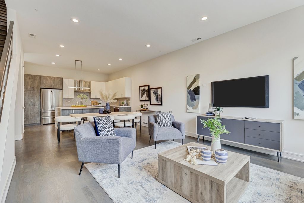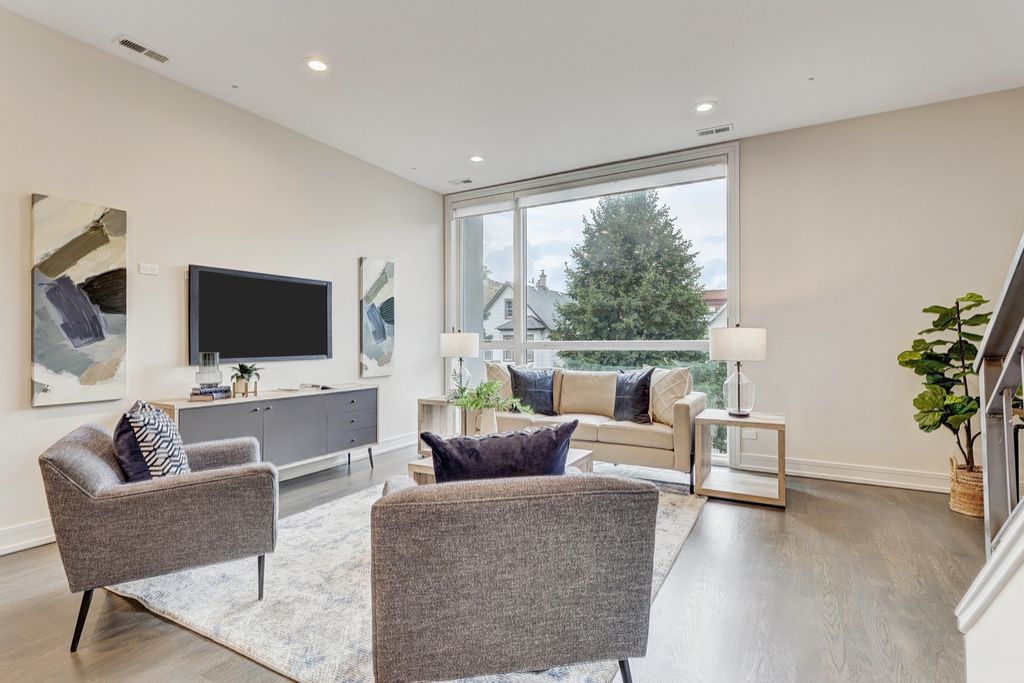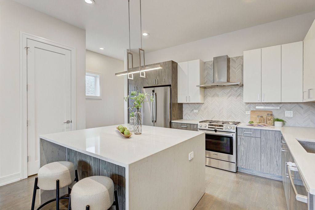 3115 W Lyndale - Logan Square Duplex Up Penthouse. Step into style and sophistication with this 3 bedroom / 3 bath duplex-up penthouse in an intimate two-unit building on one of Logan Square's most desirable tree-lined streets. Walls of oversized, floor-to-ceiling windows flood the home with natural light, highlighting custom contemporary cabinetry, quartz countertops, Bosch appliances, under-cabinet lighting, and wide-plank oak hardwood floors. Interior details include 8' solid-core doors, designer fixtures, and a split-level layout with a top-floor primary suite offering spa-like luxury: heated floors, steam + rain shower, and fully built-out closets. Modern living continues with pre-wiring for a full tech package-including speakers, video intercom, and security system. Outdoor space is a dream, featuring multiple decks, an interior stair to your private rooftop oasis, and an additional rear deck. Garage parking included. Prime Logan Square Location -- Live in the heart of Chicago's most celebrated food neighborhood (Axios #1 pick). Just blocks from culinary icons like Lula Cafe, the award-winning Daisies, the legendary Longman & Eagle, inventive newcomers like Akahoshi Ramen and The Duplex, plus neighborhood favorites like Bang Bang Pie and Bungalow by Middle Brow. Palmer Square Park is at your doorstep, and the CTA Blue Line puts downtown and O'Hare within easy reach. This is not just a home-it's the perfect blend of contemporary design and Logan Square lifestyle.