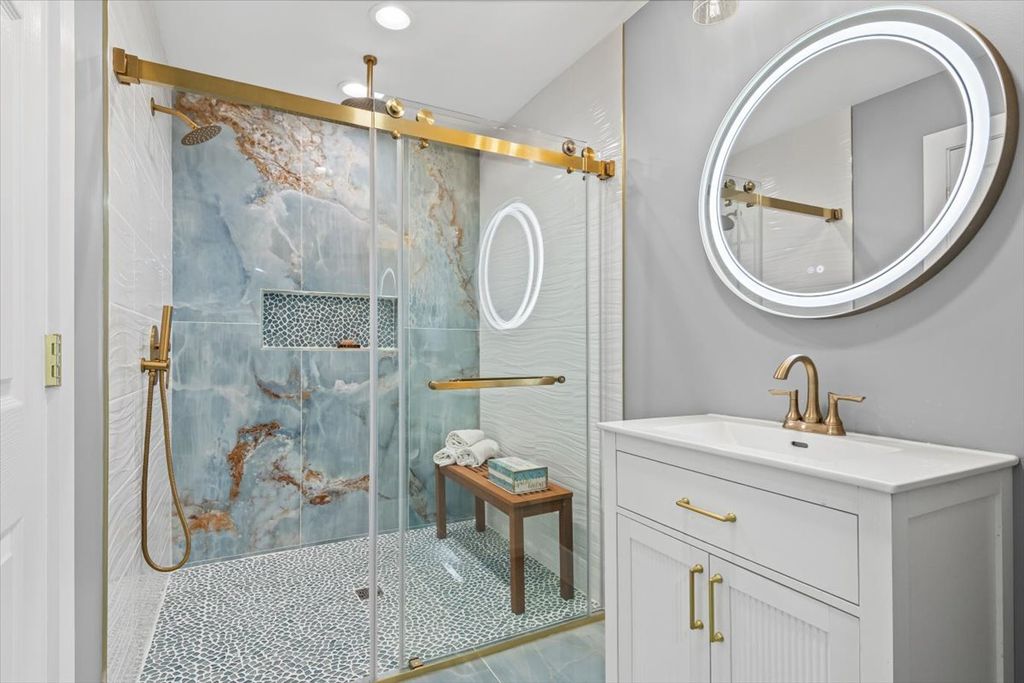Walk-to-town farmhouse with ultra-modern updates! This 4-bedroom, 2-bath 4-car charmer blends classic character with sleek, stylish finishes. Many major updates have been completed, including a 2021 roof on the main house, new fully reimagined eat-in kitchen with crisp white cabinetry, striking blue subway tile, and updated HVAC for peace of mind. Inside, you'll love the spacious living and dining rooms, two absolutely gorgeous remodeled baths, large walk-in closets, all new flooring, all fresh paint, and a new chic wrought iron stair rail. Two bedrooms on the main level and two upstairs-including one with a soaking tub that's calling your name-offer flexible living. Outside, this in-town treasure shines with a freshly sealed driveway, the 4-car garage (or 3 with workshop area) large, private patio perfect for gatherings, and fully fenced yard with dog run. Across from the middle school and close to everything, this move-in ready gem is a rare blend of farmhouse charm and modern flair. Garage with workshop area is 693 sq feet! Don't wait-schedule your tour today! 10 minutes to I90/Gold Corridor, 140 acre community park for recreation and leisure activities, camp, hike, picnic or ski over 7 mile trails at Marengo Ridge County Conservation Area
