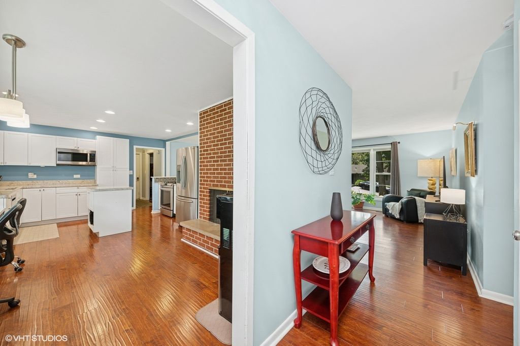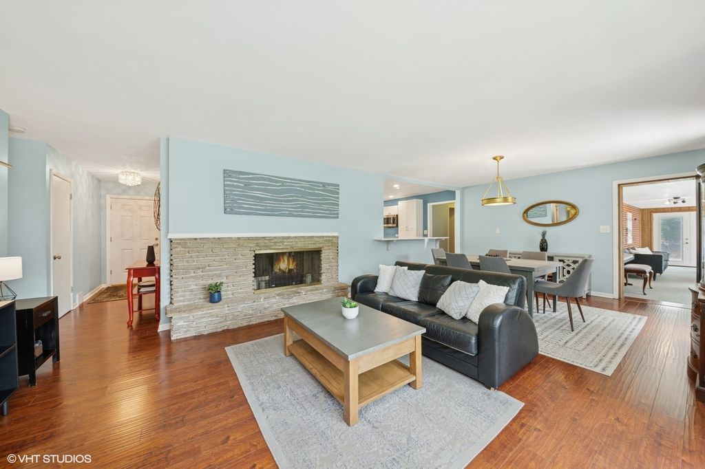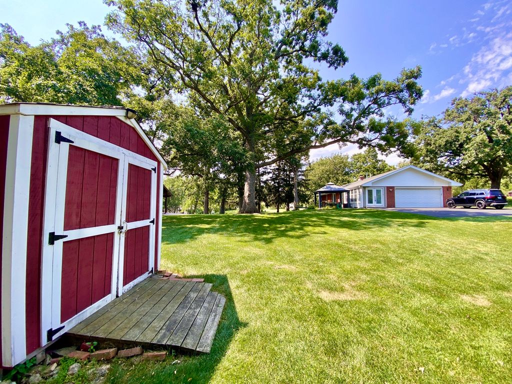 Looking for S-P-A-C-E? Don't miss this Mid-century move-in ready dream home on almost 3/4 Acre lot with mature trees ready for your add-on's or just move in and enjoy! Located in the Sherwood Oaks neighborhood of unincorporated Elgin at 1301 Little John Drive. This renovated single-level brick ranch residence offers the perfect blend of comfort and convenience on a spacious corner lot making expansion of the home easy if desired. As you enter, you're greeted by an abundance of natural light that fills the living space with modern renovations, meticulous upkeep and character in every detail, this 3 bedroom, 2 bathroom home with double-sided wood burning fireplace and large windows with a view of the expansive yard, making it easy to enjoy a seamless indoor-outdoor living experience. The dining room, perfect for gatherings, flows into an island kitchen with breakfast bar with newer stainless-steel appliances with plenty of space for an eat-in kitchen or work from home office space. The home features three spacious bedrooms, including a primary suite with an updated bathroom featuring a stand-up shower and dual vanity. The second and third bedrooms are spacious with the shared second bathroom featuring a bathtub. A sun filled second family room leads to an outdoor paver patio with gazebo that overlooks the lush, large yard-ideal for outdoor dining or simply enjoying the peaceful surroundings. Every detail thoughtfully designed and maintained with abundant closets and storage. With the large long driveway and attached 2 car garage, you can easily store multiple vehicles plus a shed for additional storage. Newer mechanicals and siding, too many updates to list!! Conveniently located, this residence combines the serenity of suburban life with easy access to city amenities just minutes to downtown Elgin, Metra, I-90, 15 minutes to Woodfield Mall, 25 to O'Hare, and just an hour to downtown Chicago. Watch the video and 3-D Tours and schedule your in-person tour now before it's gone! Special below market financing available with preferred lender plus first time buyer incentives!