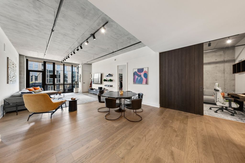 Welcome to your dream home in one of Chicago's most vibrant neighborhoods, the West Loop. Sold furnished, this three-bedroom plus den, three and a half bath condo combines modern luxury and comfort with the industrial-chic character the neighborhood is known for. Step inside to soaring ceilings, wide-plank hardwood floors, and Italian design throughout. The open-concept living area features spacious living and dining areas and a large chef's kitchen with high-end stainless steel appliances, quartz countertops, and a spacious island. The primary suite is a quiet retreat with two large walk-in closets and a spa-like bathroom with a dual vanity, soaking tub, and glass-enclosed shower. Two additional ensuite bedrooms provide ample space for family or guests. The den has a custom wood door, and is ideal for a media room, workout space, or a quiet home office. Enjoy city views from your private balcony and close it down with motorized black-out shades in bedrooms. This condo has in-unit laundry, 2 garage parking spaces available for purchase, and smart-home features, every detail has been designed for comfort and convenience. Located just steps from world-class dining, Fulton Market, Randolph Street's "Restaurant Row," boutiques, galleries, parks and a dog park-this condo truly puts the best of the West Loop at your doorstep.