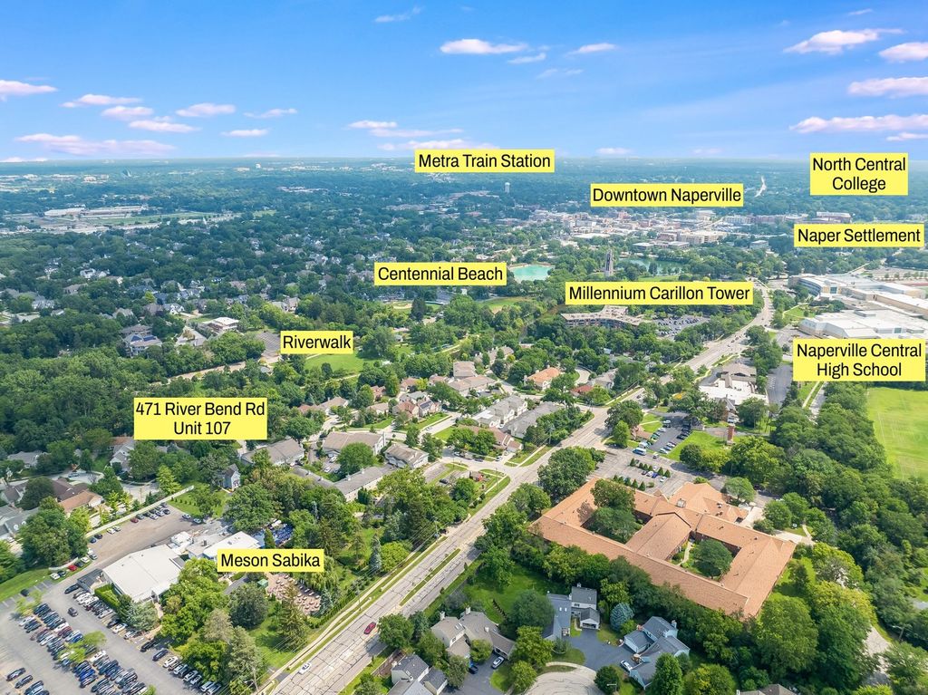 Welcome Home! Rarely available River Bend Heights Condo Unit in Naperville's desirable River Bend subdivision. This area is the most convenient location in Naperville to the Riverwalk, Downtown, Centennial Beach and Park, and Masion Sabika right next door. Step inside to an open first-floor living area featuring gleaming hardwood floors and a built-in beverage fridge. The clean, all-white kitchen is equipped with a breakfast bar that seats two. This 2bedroom, 2.1bathroom condo includes second-floor laundry and two full baths upstairs. The elegant master suite boasts a private shower, separate soaking tub, and a double-sink vanity. Both bedrooms offer spacious closets for all your storage needs. Perfectly situated along the Riverwalk and just a short distance from downtown Naperville! Enjoy gatherings on your private patio and benefit from the convenience of a one-car attached garage with generous storage. Located in the highly regarded Naperville school district and within easy reach of the train and the lively downtown area, this is refined Riverwalk living at its best!