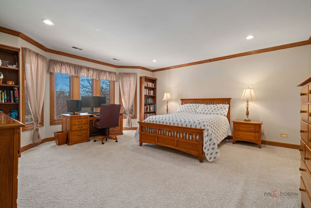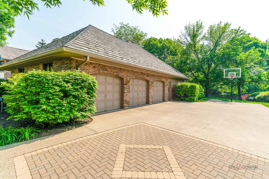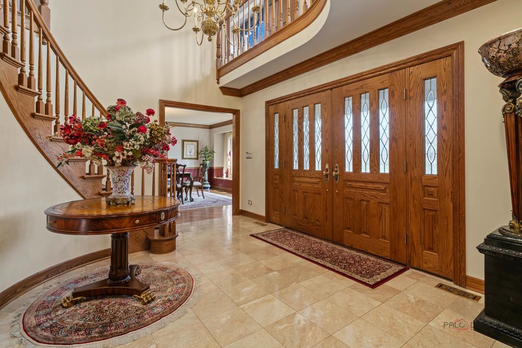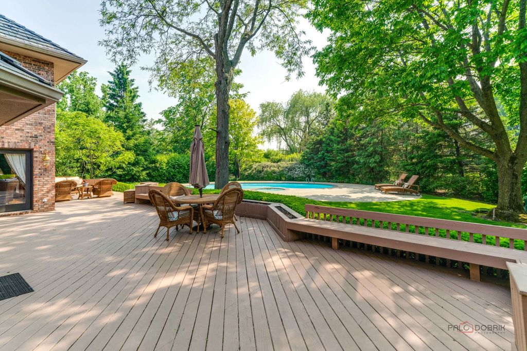 Impressive and beautifully maintained brick home in the lovely Evergreen neighborhood, featuring a DaVinci composite roof and spacious living throughout. With five bedrooms and six full bathrooms, this home offers exceptional comfort and flexibility. A circular driveway leads to a heated three-car garage with epoxy flooring and custom built-in cabinetry. The marble entryway and sweeping staircase set a grand tone. Inside, you'll find crown molding, hardwood floors, thoughtful details, and refined finishes throughout. The bright kitchen features granite countertops, a center island, coffee bar, pantry, and views of the pool and landscaped backyard-perfect for everyday living and entertaining. The kitchen opens to a cozy family room with a fireplace and wet bar. Glass sliders lead to a deck and outdoor living area for seamless indoor-outdoor flow. A formal dining room and inviting living room provide great space for hosting. A beautiful three-season room with floor-to-ceiling windows and skylights offers a peaceful year-round retreat. The main level also includes a private office, guest suite with an updated full bath, and a convenient laundry room. Upstairs, the spacious primary suite features a fireplace, two walk-in closets, and a stunning spa-like bath-completely renovated in 2020-with a walk-in shower, soaker tub, and elegant finishes. Three additional en suite bedrooms offer space and privacy for family or guests. The finished basement includes a large rec area, wet bar, gym, and full bath-ideal for entertaining or relaxing. The backyard is built for fun, with a pool and hot tub perfect for summer parties, pool games, or simply cooling off. A truly special home in a well-maintained, picturesque neighborhood-just minutes from the Lake Forest Metra station, shopping, and dining.