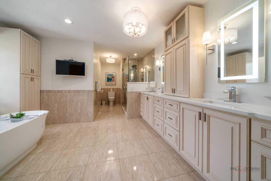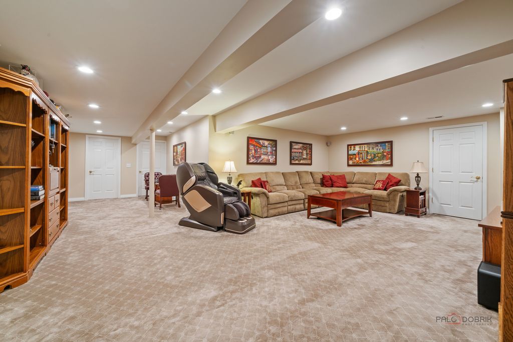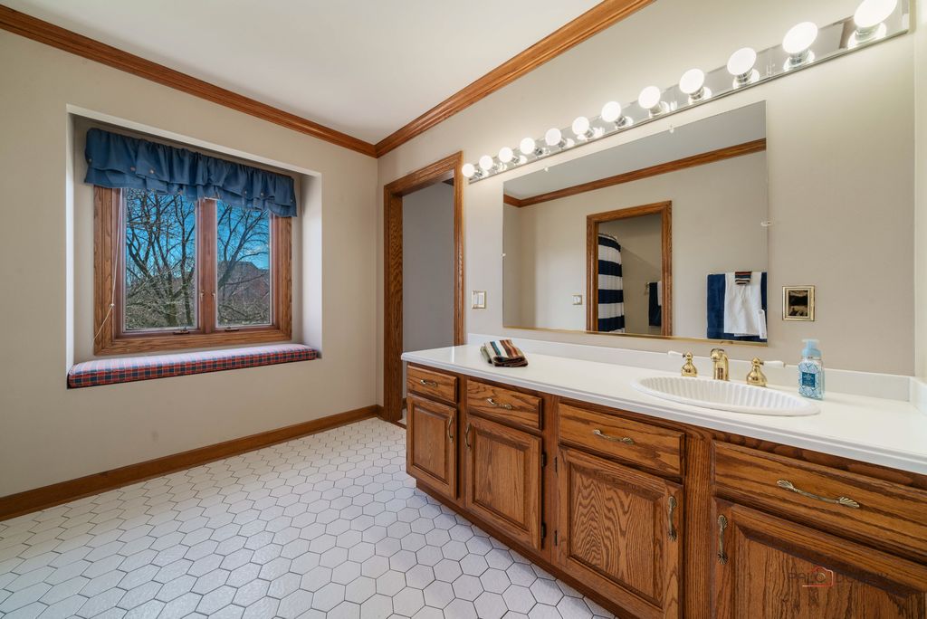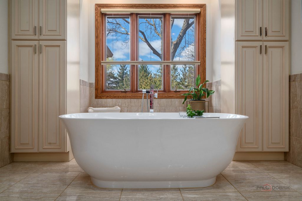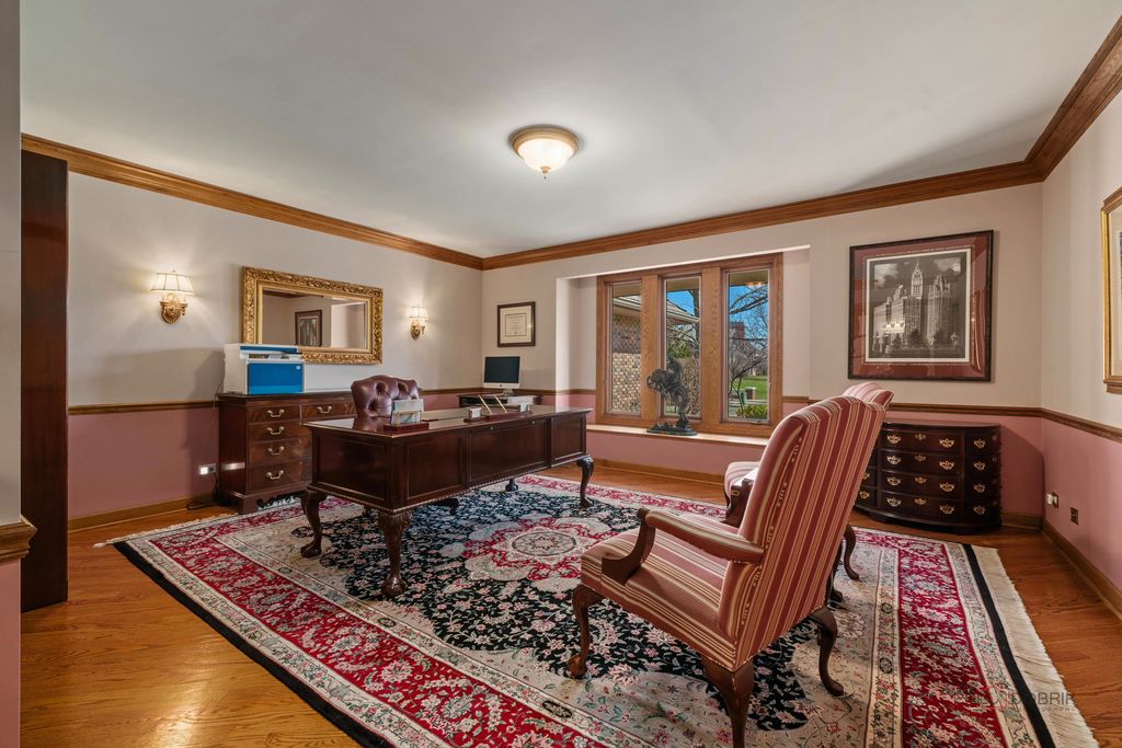Impressive and beautifully maintained brick home in the lovely Evergreen neighborhood, featuring a DaVinci composite roof and spacious living throughout. With five bedrooms and six full bathrooms, this home offers exceptional comfort and flexibility. A circular driveway leads to a heated three-car garage with epoxy flooring and custom built-in cabinetry. The marble entryway and sweeping staircase set a grand tone. Inside, you'll find crown molding, hardwood floors, thoughtful details, and refined finishes throughout. The bright kitchen features granite countertops, a center island, coffee bar, pantry, and views of the pool and landscaped backyard-perfect for everyday living and entertaining. The kitchen opens to a cozy family room with a fireplace and wet bar. Glass sliders lead to a deck and outdoor living area for seamless indoor-outdoor flow. A formal dining room and inviting living room provide great space for hosting. A beautiful three-season room with floor-to-ceiling windows and skylights offers a peaceful year-round retreat. The main level also includes a private office, guest suite with an updated full bath, and a convenient laundry room. Upstairs, the spacious primary suite features a fireplace, two walk-in closets, and a stunning spa-like bath-completely renovated in 2020-with a walk-in shower, soaker tub, and elegant finishes. Three additional en suite bedrooms offer space and privacy for family or guests. The finished basement includes a large rec area, wet bar, gym, and full bath-ideal for entertaining or relaxing. The backyard is built for fun, with a pool and hot tub perfect for summer parties, pool games, or simply cooling off. A truly special home in a well-maintained, picturesque neighborhood-just minutes from the Lake Forest Metra station, shopping, and dining.