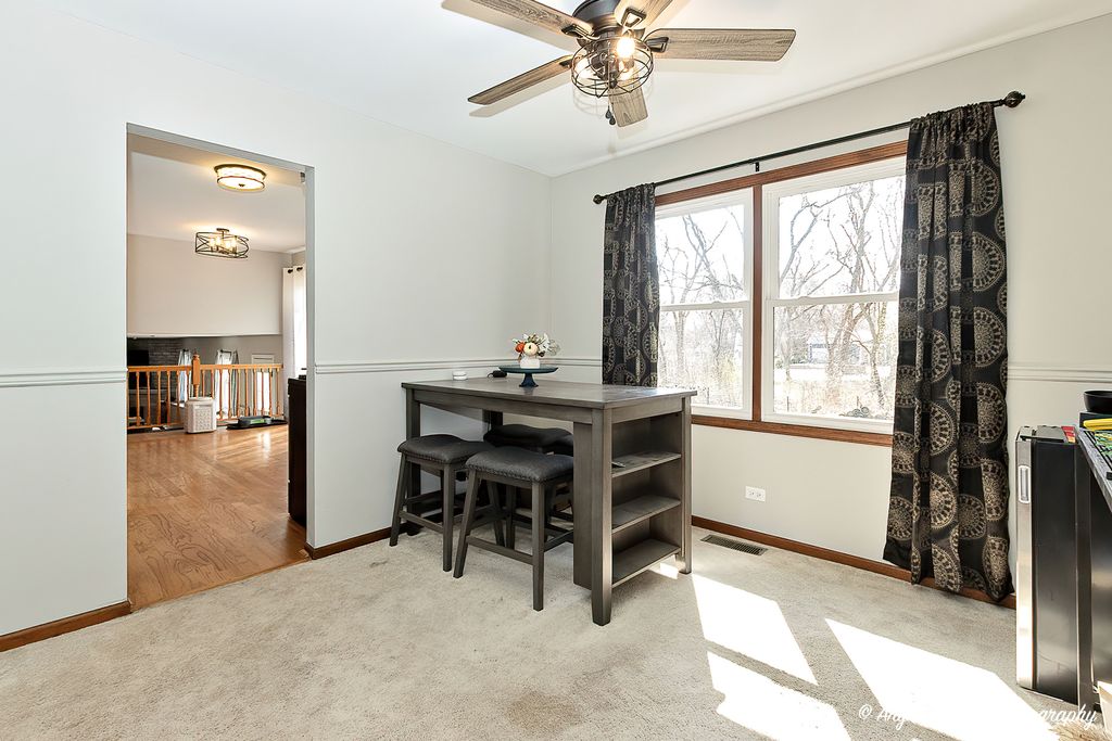 Beautifully Updated 3-Bedroom GREAT Home in Sought-After Village Green - This freshly remodeled 3-bedroom, 2-bathroom home with an attached 2-car garage is located in the highly desirable Village Green neighborhood-just a short walk from three beautiful central parks, the Metra train station, shopping, restaurants, and the local library. A perfect blend of comfort, convenience, and style, this home is move-in ready and waiting for your personal touch! Step inside to discover a bright and inviting interior, freshly painted in modern, neutral tones. The kitchen and dinette area feature beautifully refinished hardwood floors, while brand-new neutral carpeting adds warmth and comfort throughout the rest of the home. The kitchen is equipped with updated cabinetry, a built-in microwave, a dishwasher, and ample counter space for all your culinary needs. The layout offers excellent flexibility for everyday living and entertaining. A large walk-out lower-level family room boasts a cozy wood-burning fireplace and provides access to the private backyard-your own outdoor oasis. Off the kitchen, a sliding glass door leads to a freshly landscaped lot with mature trees and wooded views, ideal for relaxing or hosting gatherings. Enjoy peace of mind with recent major updates, including a new roof (2022), newer windows (2016), newer air conditioner (2025), and a new furnace(2025). The kitchen and bathrooms have also been tastefully updated, offering both functionality and modern appeal. Located in a quiet and friendly community, this home is perfect for anyone looking to enjoy suburban living with easy access to amenities and transportation. Note: Property taxes do not currently reflect the homeowner's exemption-potential savings await! Walk to Parks, Metra & More! Don't miss out on this wonderful opportunity in a prime location. Schedule your private showing today and experience all that this charming home has to offer! Short sale.