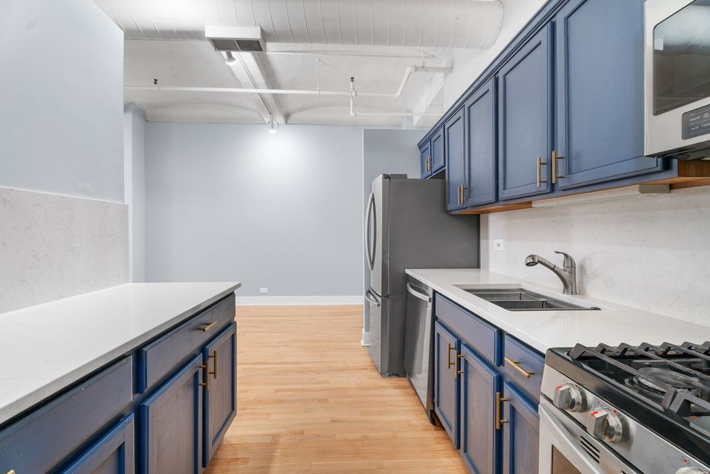 Stylishly Renovated Loft in the Historic Pope Building of Printers Row Step into this beautifully updated 1 bed, 1 bath loft in the iconic Pope Building and experience a perfect blend of vintage character and modern upgrades. Soaring ceilings with architectural arches, freshly painted, hardwood floors throughout (that were just refinished), and oversized windows create a bright and spacious feel. The renovated kitchen is a showstopper, featuring crisp white quartz countertops, rich blue cabinetry with gold hardware, high-end stainless steel appliances, and a sleek single-basin sink. The bathroom has been tastefully updated with contemporary tile, and an extra-large vanity for storage and style. Additional features include central heat and air, generous storage throughout, and a dedicated storage cage. The professionally managed building offers secure entry with call box and cameras, two elevators, a laundry room, bike storage, and a welcoming lobby. Located in the heart of Printers Row, enjoy a Walk Score of 99 and Transit Score of 100-Red and Blue lines and the LaSalle Street Metra are just steps away. Explore the best of Chicago with easy access to Grant Park, Michigan Avenue, Museum Campus, and The Art Institute. Walk to Trader Joe's, Target, Jewel-Osco, and enjoy nearby green spaces like Printer's Row Park and Dearborn Park. Easy access to Lake Shore Drive, I-90, and I-290 make commuting a breeze. Don't miss this exceptional urban retreat!