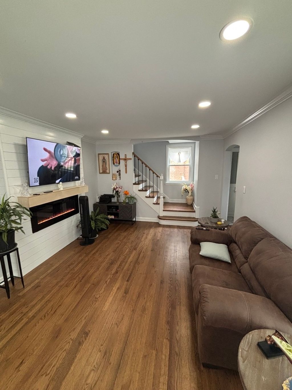 Beautifully renovated georgian brick home this home does not disappoint! Some of the renovations include: all new copper plumbing, new appliances, new water heater, new roof, new windows, new electric upgrade, insulation of 12" in the attic, new siding, drain tile in the basement, Escape window for the bedroom in the basement. Brand new bathrooms, Brand new kitchen with a stainless steel hood vent. Brand new light dimmer switches located throughout the home as well as recessed lighting, new ceiling fans and so much more to list.. This stunning rehabbed georgian was rehabbed with permits. It features new siding, a two car detached garage, and hardwood floors throughout. The main level includes a beautiful maintenance free electric fireplace located in the spacious living room, modern kitchen with quartz countertops and stainless steel appliances, a bedroom, and a half bath. Upstairs offers two large bedrooms, a luxury bath with a rain shower and a soaker tub, plus a convenient laundry closet with brand new appliances. The partially finished basement includes a bedroom and laundry sink where you can add an additional washer & dryer if you wish. You also have space to add another bath. Walking distance to schools move in ready and full of charm.