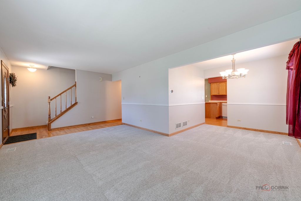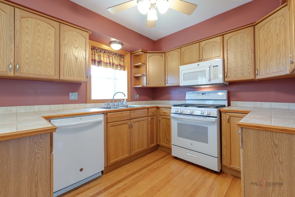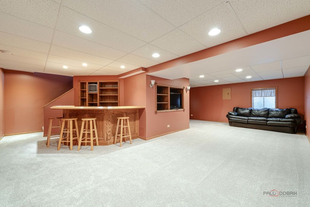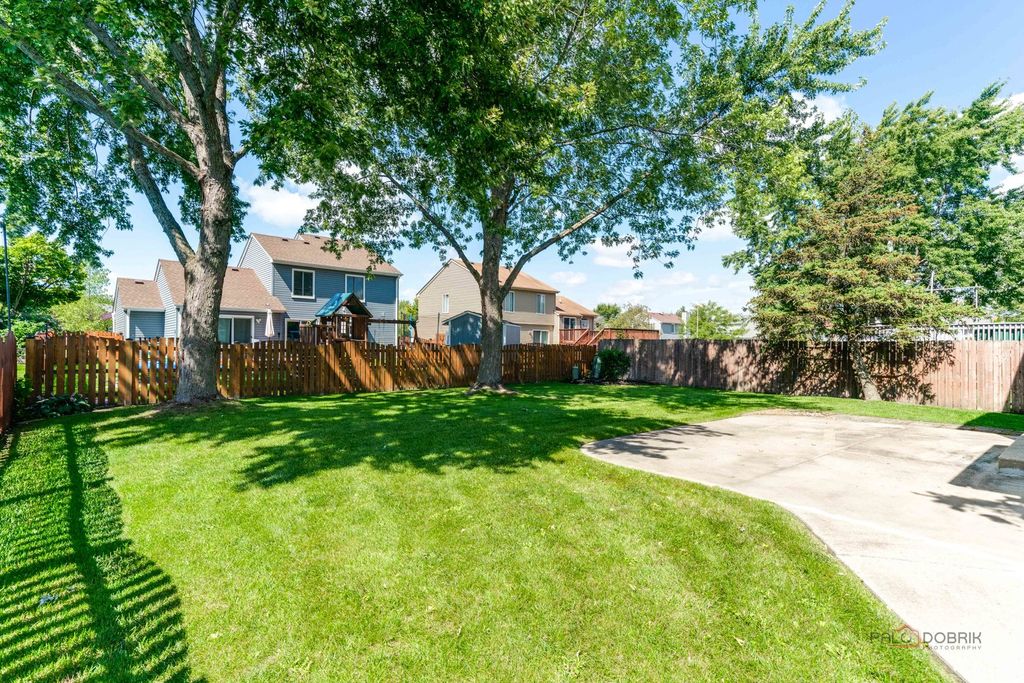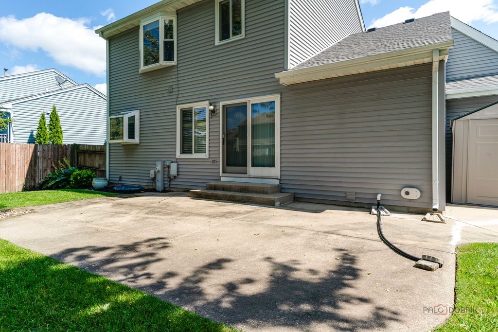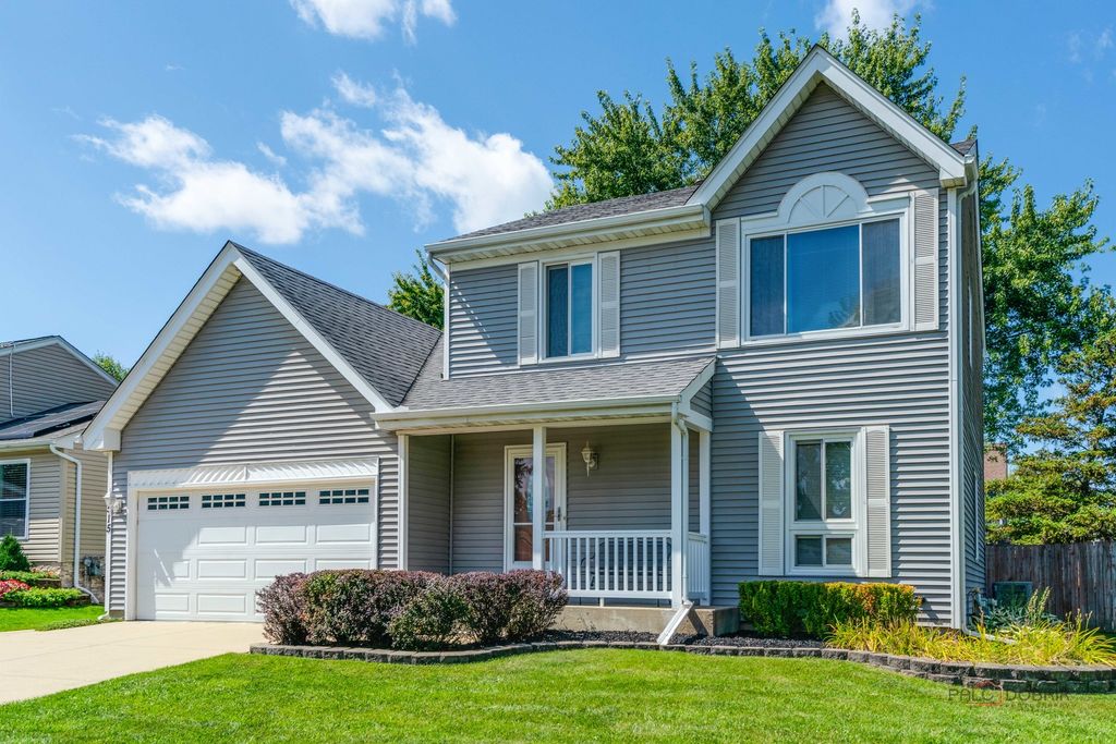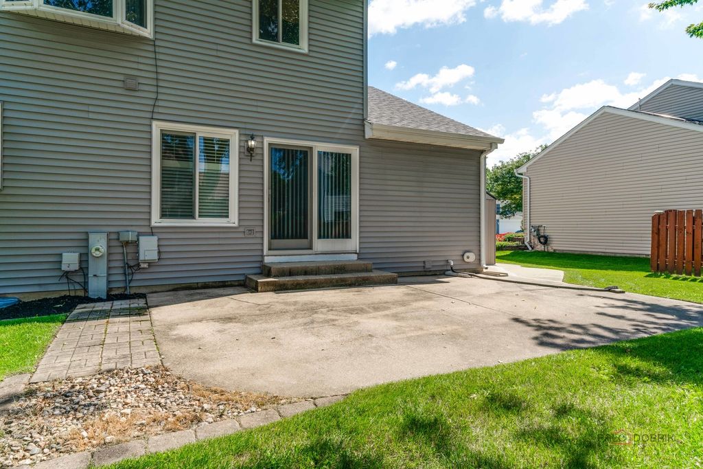 Welcome to your dream home in The Meadows! This meticulously maintained 2-story beauty shows like a model and is ready for you! Step into the foyer with gleaming oak flooring that flows into the open-concept kitchen and family room, ideal for gatherings. L-shaped living and dining rooms offer flexible space for hosting or relaxing. Spacious and modern, featuring oak flooring, ample cabinetry, and a brand-new oven/range , seamlessly connected to the cozy family room. The 3 large upstairs bedrooms create an airy feel, large bay window in the owner's suite with private full bath(rare in the homestead model!). A second upstairs full bath ensures convenience for all. The finished basement with custom bar is perfect for game nights or parties, plus a separate laundry/storage room for organization or workshop. The expansive, nearly fully-fenced yard offers privacy and space for play, gardening, or pets. New high-efficiency furnace (2/25), new water heater (3/25), and brand-new carpet throughout ensure worry-free living. Some other nice features are the oak trim and doors, chair rail molding, a kitchen garden window, the large concrete patio and driveway, the charming front porch, and the attached 2-car garage. This pristine home sparkles with pride of ownership and is located in a peaceful, sought-after neighborhood. Don't miss your chance to own this turnkey treasure!