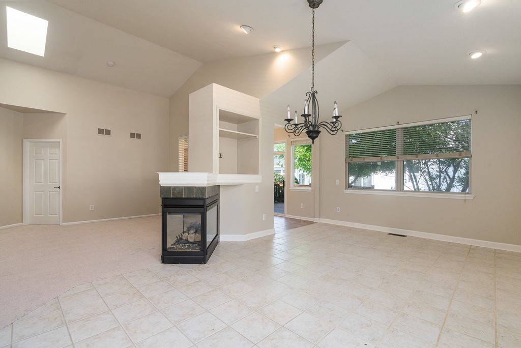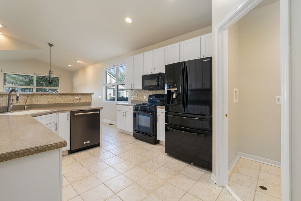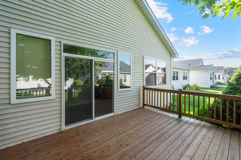 Welcome to this beautifully updated ranch in the highly sought-after Grand Haven 55+ community, designed for active adults who enjoy resort-style living. This sun-filled home boasts an open and airy layout with vaulted ceilings, skylights, and an inviting three-sided gas fireplace that warms both the great room and dining area. The updated kitchen features 42-inch white cabinets, a custom tile backsplash, and Corian countertops, perfect for preparing meals and entertaining. A large sunroom with a butler's pantry overlooks the expansive outdoor deck, offering a peaceful retreat. The vaulted master suite includes a spacious walk-in closet and a private bath with double raised vanities and an oversized shower. With three bedrooms (or 2 bedrooms with den/office), two baths, and a full unfinished basement with roughed-in plumbing, this home offers plenty of space and future potential. Additional highlights include a heated two-car garage and access to Grand Haven's top-tier clubhouse amenities, including pools, tennis courts (which also host pickleball games), a fitness center, ballroom, salon, arts and crafts room, and a plethora of engaging activities. Conveniently located just minutes away from shopping outlets and expressways!