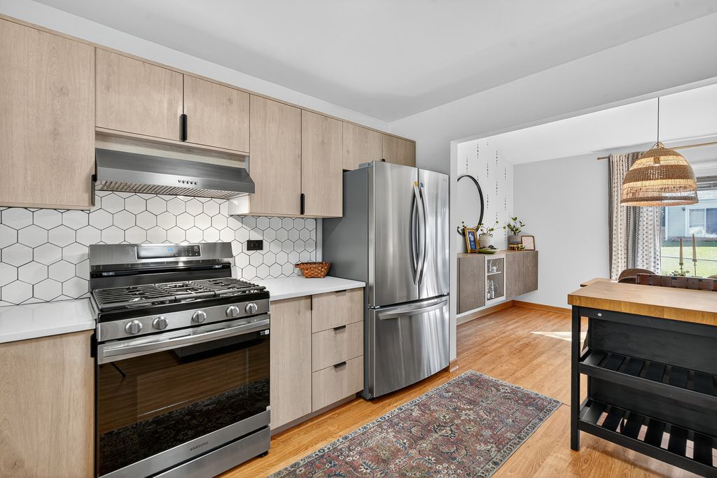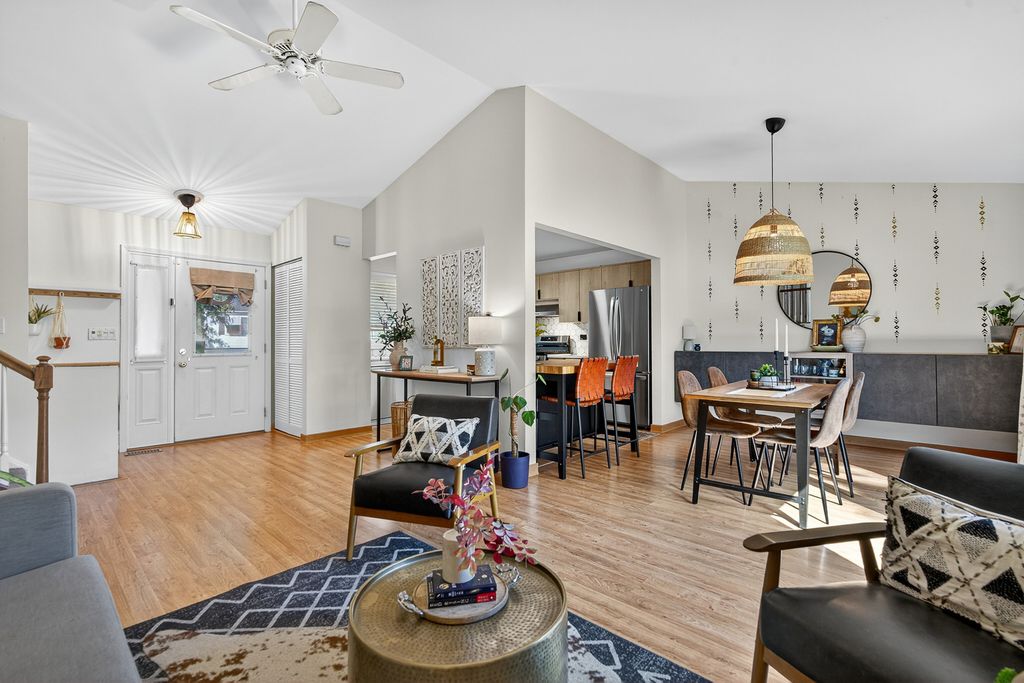 Move-in-ready alert! This beautifully updated split-level home with the ideal blend of timeless charm and modern upgrades--perfectly situated in a peaceful neighborhood with easy access to schools, parks, and commuter routes--is ready to be yours! Enjoy a thoughtfully designed kitchen, renovated in 2023 with new cabinets, countertops, and stainless steel appliances. The primary bath received a recent refresh with tile backsplash as well as a new vanity and plumbing fixtures in 2024. Just this year, the seller installed a gorgeous stamped-concrete patio (2025) for outdoor entertaining. Find three bedrooms upstairs with full bath. Enjoy L-shaped living and dining with a family room on the lower level. Walk-out to the back yard through sliders on the main level or the family room level with immediate access to the patio. All three well-appointed and spacious bedrooms are on the upper level, providing privacy and quiet. A lower-level utility room houses laundry & double as a mudroom space when entering. The attached 1.5-Car Garage provides plenty of added storage space. Large windows let the light pour in and provide classic curb appeal.