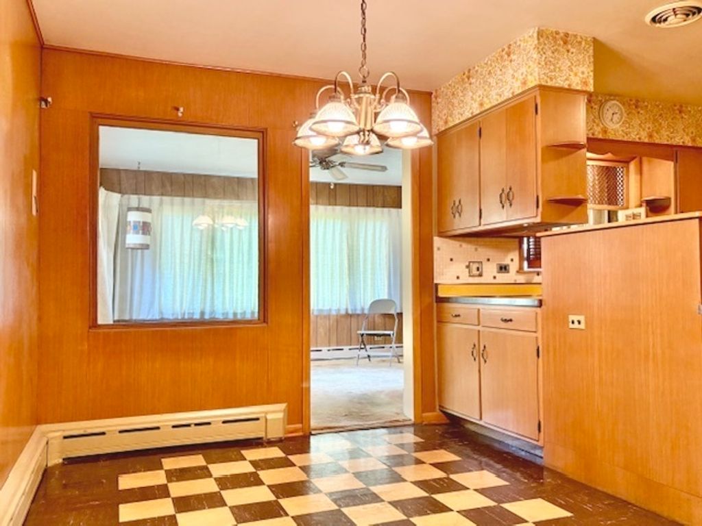Mostly all brick ranch- with three bedrooms, 2 1/2 baths, full basement with a second kitchen and additional fireplace. Could be perfect for multi-generational living! Great eat-in kitchen with addition that can be used as a den or dining room, large living room with beautiful stone fireplace! 3 generous-sized bedrooms, hardwood under carpeting on first floor! Gorgeous backyard, 3/4 fenced in! This property has been well taken care of and is ready for your updates. Beautiful hardwood floors under carpeting. Carpets were not tacked down! Loads of storage, pride of ownership! Come see this great home! Estate Sale being sold "As-Is."