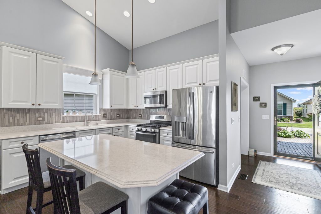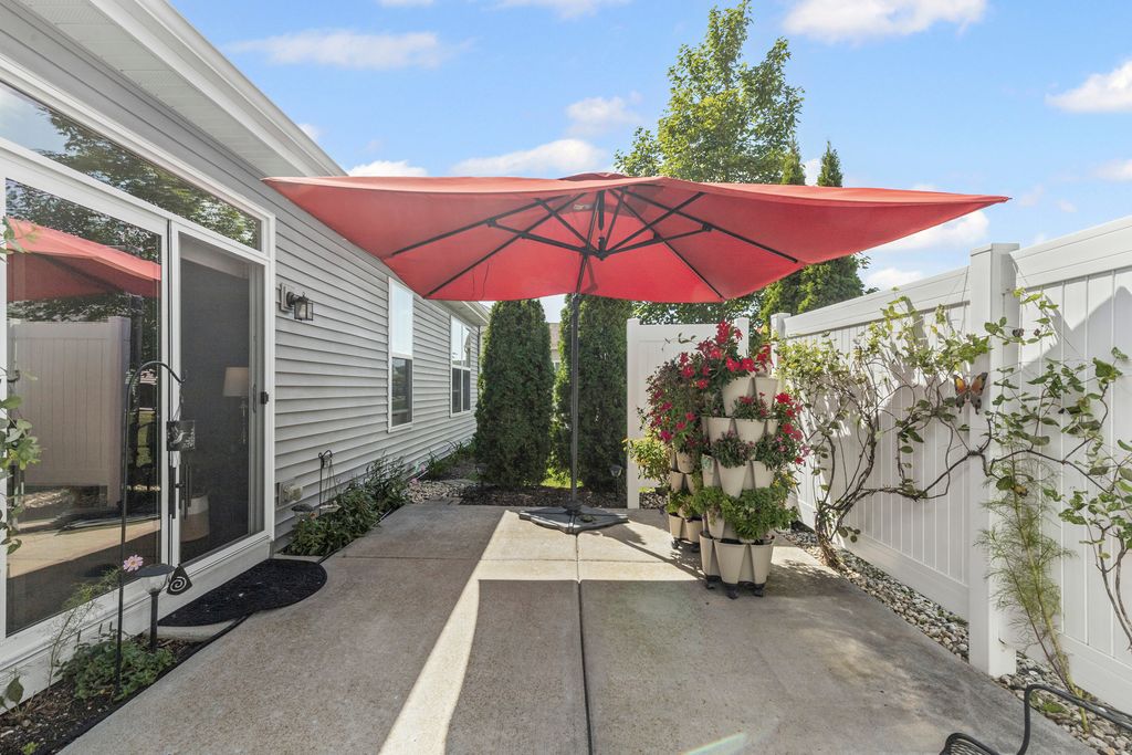 **NAPA MODEL WITH EVERY BELL AND WHISTLE UPGRADE YOU CAN IMAGINE on a VERY QUIET dead end street** Offering 2 bedrooms, a study, cathedral ceilings, and a wonderful open floor plan, this gorgeous home is sure to please. Starting outside, this home offers an expanded (21' deep), fully insulated garage with overhead storage, an expanded 12'x14' back patio with privacy panels, beautiful brick pavers and driveway paver ribbons leading to the home, and absolutely gorgeous landscaping for both beauty and privacy. Step inside and find hardwood floors, plentiful recessed lighting, wood plantation shutters, new sliding door with transom and stylish privacy panels, and a fabulous kitchen with SS appliances, quartz countertops, and glass tile backsplash. Bedrooms and bathrooms have 36" doorways, toilets are 'comfort height', and there is professional 3M film on the windows that get direct sun exposure. Bathrooms are stylish, and the primary bath features a walk in shower and dual sink vanity. This home is extremely energy efficient, including a 92% efficient furnace, energy saver water heater, R-15 insulation in exterior walls, R-49 attic insulation, and Low-E Energy Star windows. Every detail has been thought of in this home, and it has been maintained METICULOUSLY. All of this in the sought-after maintenance-free, clubhouse community of Andare at Talamore. Enjoy neighborhood gatherings and activities, clubhouse with fitness center, outdoor pool with waterslide and splash area, walking and biking paths, a fishing pond, playground, picnic area, and more. Added bonus...the sellers report that they have the VERY BEST neighbors too! Don't miss this one.. HURRY over here!