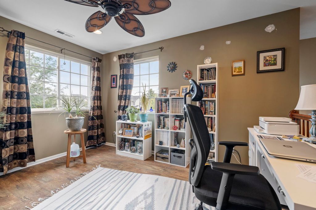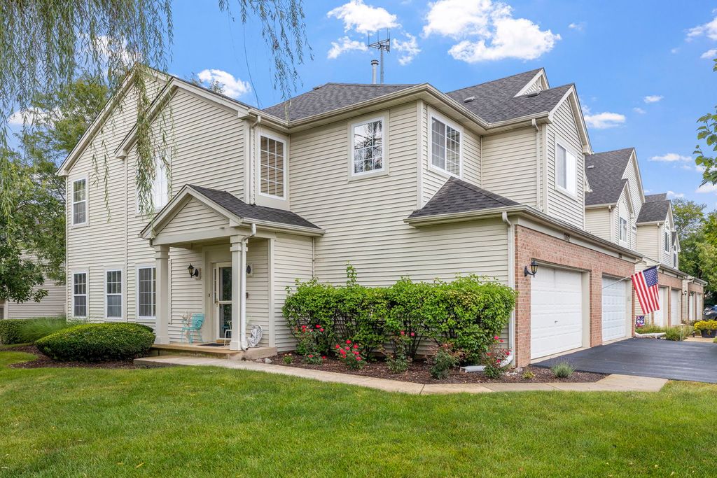 : Hurry to view is end-unit townhome in popular Willow Walk. Impressive cathedral 2 story entry with plenty of sunshine pouring in as natural sunlight...Open staircase and railing. Living room is open to the dining room eat-in kitchen has Cherrywood 42" cabinets, ceramic tile backsplash and ceramic flooring plus a closet pantry and sliding patio doors to the outside patio. Home also has a hearth room with gas heatilator fireplace. It is the Linden Model which is one of the largest and being an end-unit it has more windows. 2 bedrooms plus a loft upstairs, laundry room is upstairs also. Master bedroom has cathedral ceilings and has a full bath, double sinks with seperate shower and soaker tub, master bedroom also has a huge walk-in closet. Double closets in the second bedroom. There is a half bath on the main-level, 2 car attached garage wth opener and transmitters. Great area....nice that association dues include exterior maintenance plus water and sewer. New air conditioner 2019, furnace 2020, water softener 2021...Association did new roofs 2022. Parks, schools, shopping and expressways are all close.