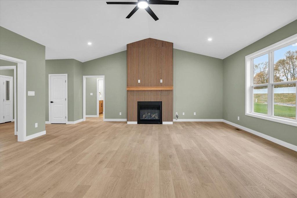 Discover all that's to love in this stunning new-construction ranch by Nyadaro Homes, located in desirable Beringer Commons! Offering over 2,000 square feet of thoughtfully designed living space, this home features an open concept with 3 bedrooms and 2 full bathrooms. The gourmet kitchen, complete with an expansive island and barstool seating, along with walk in pantry, seamlessly connects to the light-filled living room anchored by a cozy fireplace-perfect for gathering and entertaining. A convenient drop zone off the garage, a dedicated laundry room, and a private primary suite with a spa-like bathroom and generous walk-in closet add to the home's functionality and comfort. Blending modern design with everyday convenience, this home is truly move-in ready-don't miss your opportunity to make it yours! Qualifies for THINK Urbana tax savings.