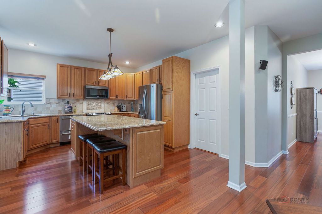 Stunning Home in Washington Park Subdivision! Nestled on a quiet cul-de-sac, this elegant residence boasts incredible curb appeal and over 4,000 sq.ft. of living space! Step into the 2-story foyer filled with natural light, flanked by a spacious living room and formal dining room. The renovated kitchen exudes timeless warmth featuring a huge center island offering ample workspace with bar stool seating, spacious breakfast room, all stainless steel appliance and flows seamlessly into the expansive family room-perfect for entertaining. The first-floor bedroom, currently used as an office, sits adjacent to an updated full bath, making it not only ideal for a work-from-home lifestyle but also ideal for in-law or guest suite. Beautiful hardwood floors span the main level, complemented by a generous laundry/mudroom with garage and side-yard access. Upstairs, the dual staircase leads to the luxurious primary suite offering abundant closet space and a spa-inspired bath with a stand-alone soaking tub, dual vanity, and stunning walk-in shower. A catwalk leads to sizable secondary bedrooms and a gorgeous updated hall bath. The finished basement is designed for fun and function with a massive recreation area, full bar with island, additional bedroom, and storage galore. Step outside to your private backyard oasis featuring a brick paver patio, lush perennials, a path to a cozy fire pit retreat surrounded by nature and a sprinkler system! Freshly painted bedrooms and laundry room add a crisp finishing touch. Unbeatable location-Woodland Middle School across the street, Bittersweet Woods Golf Club just down the road, walking distance to award-winning Warren Township Park and tons of shopping less than a mile away! This Washington Park gem offers space, style, and serenity-WELCOME HOME!