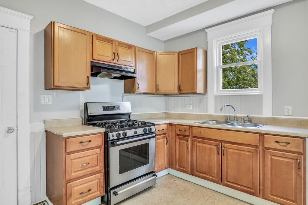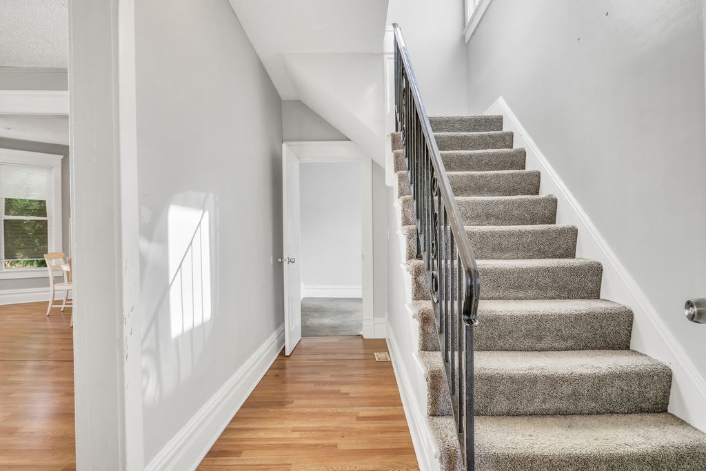 Your search ends here! This charming property is ready to welcome you! Enjoy the inviting front porch, perfect for relaxing and making it your own. Step inside to a bright formal living room with wood laminate flooring, flowing into a dining area filled with natural light. The kitchen offers plenty of cabinet space, all appliances included, and a huge walk-in pantry. A back porch adds even more space to enjoy. The main-floor bedroom is oversized with a massive closet, brand-new carpet, and fresh paint. Upstairs you'll find three more generously sized bedrooms and a full bath featuring an updated vanity and a tiled tub surround. A full unfinished attic provides endless possibilities for storage or future living space. Schedule a showing today!