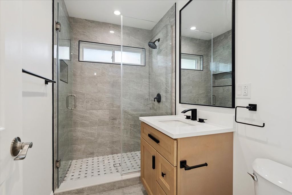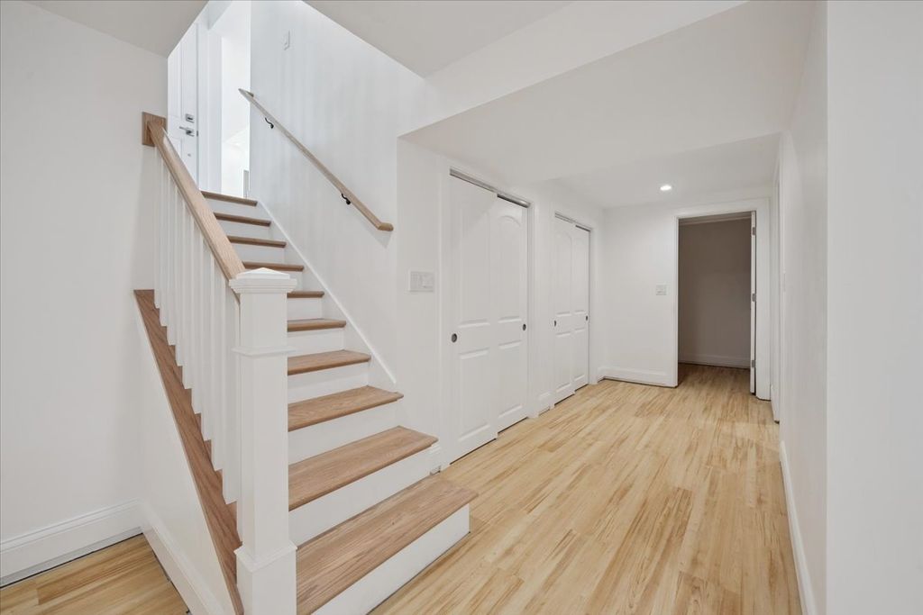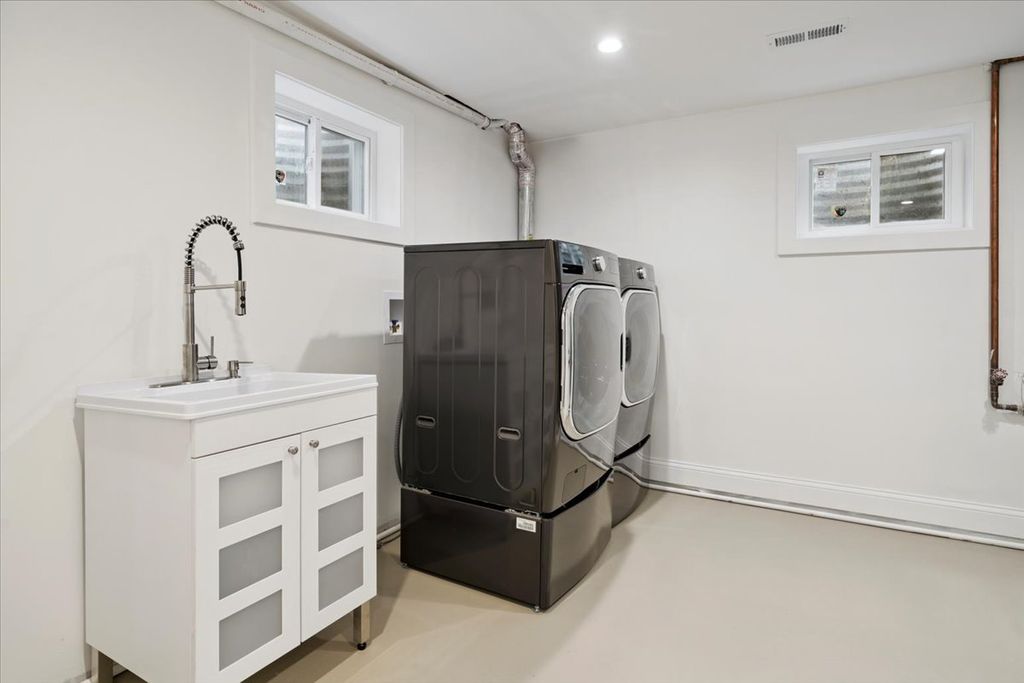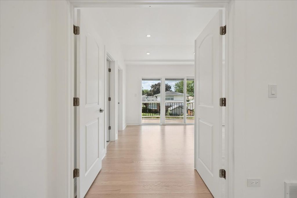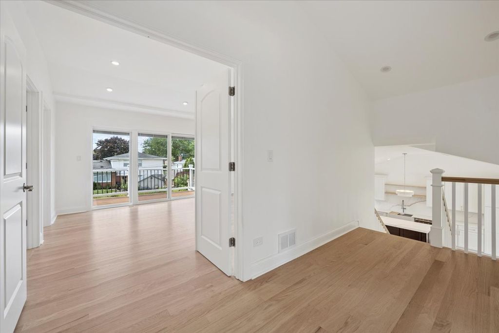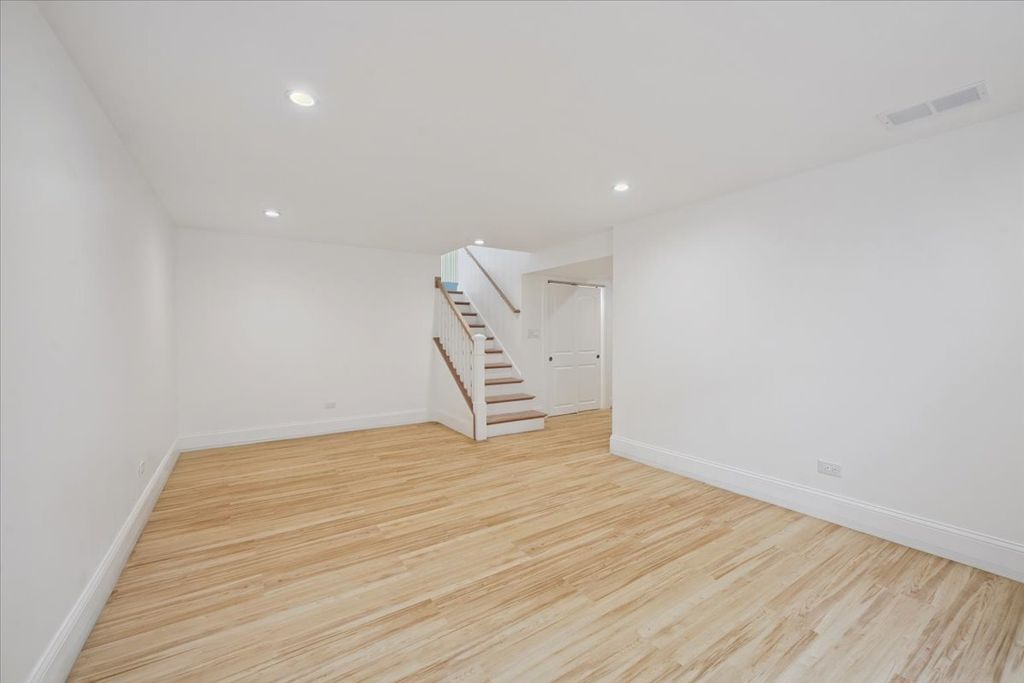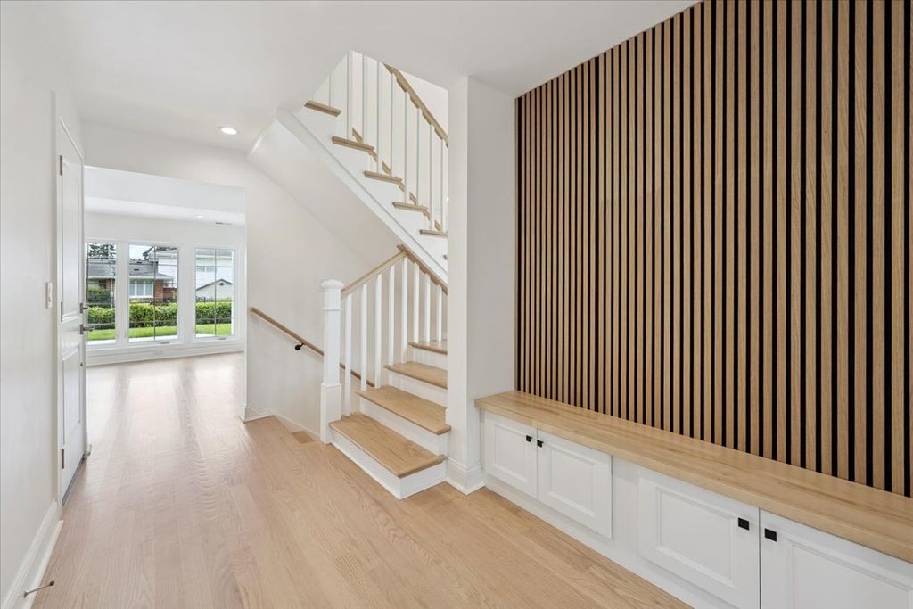 Beautifully renovated 3-bedroom, 3-bath home featuring an open-concept layout with hardwood floors, custom fireplace, and oversized windows flooding the space with natural light. The gourmet kitchen offers quartz countertops, waterfall island, pot filler, stainless steel appliances, and designer lighting. Upstairs, the primary suite includes vaulted ceilings, a private balcony, walk-in closet, and spa-like ensuite. A finished basement with family room, updated baths, modern laundry, 2-car garage with epoxy floor, and a large backyard with patio complete this move-in ready home.
