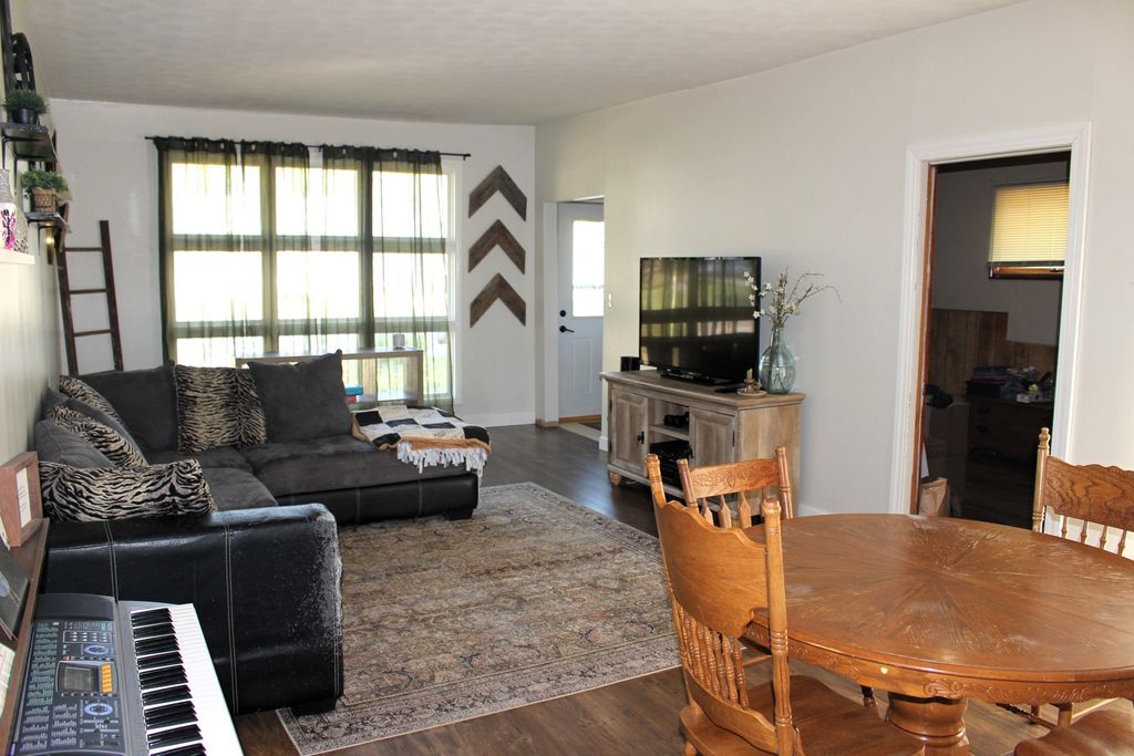 Charming 3 bedroom, 1 bath ranch home. Cozy up next to the double sided wood burning fireplace located in the spacious living room. Views of the fireplace from the kitchen that features ample cabinet space, island with seating and comes fully equipped with appliances. The main bedroom is great size and has plenty of room for larger furniture. Unfinished basement which gives you plenty of room for storage. Main floor Laundry. 1-Car attached plus a 1-car detached garage. Updates include a new roof in 2019-2020 and new AC in 2022.