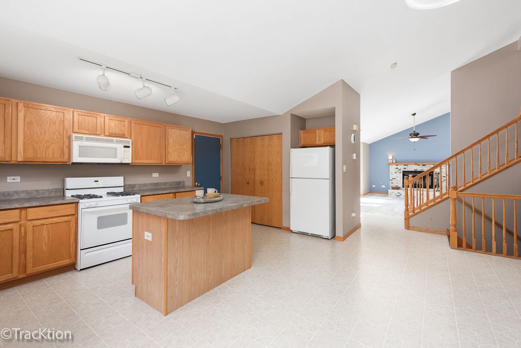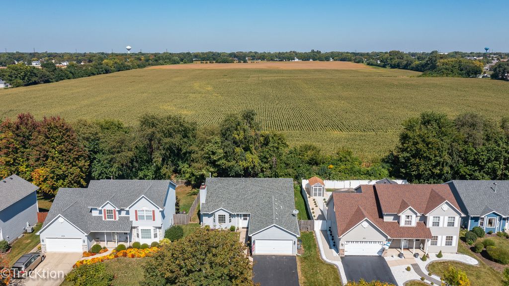 Welcome to this beautifully maintained bi-level home in the desirable Wexford subdivision, located within sought-after Plainfield School District 202. Offering 1,450 sq. ft. of comfortable living space, this home backs up to open cornfields, providing a rare sense of privacy. Step inside to find a bright living room with a vaulted ceiling, cozy fireplace, bay window, and new vinyl plank flooring (2025). The spacious kitchen with dinette also features a vaulted ceiling, a functional island, and a pantry closet, perfect for everyday living and entertaining. Upstairs you'll find three freshly painted bedrooms with new carpeting (2025) and a full bath with a dual vanity. The unfinished lower level includes a rough-in for an additional bathroom, offering great potential for added living space. Numerous updates provide peace of mind: vinyl siding and roof (2020), furnace and A/C (2021), garage door opener (2024), and stainless steel dishwasher (2025). Ceiling fans are installed in all bedrooms and the living room. With a two-car garage and an affordable price point in a fantastic neighborhood, this home is ready for its next owner! Live here and make it a wonderful life!