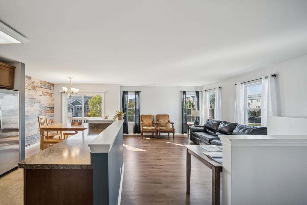 Available now! Welcome to this inviting two-story end unit townhome, offering three bedrooms and 2 full bathrooms designed for both comfort and convenience. The kitchen offers abundant cabinet and counter space, a large center island, stainless steel appliances, a built-in microwave, built-in dishwasher, disposal, and a pantry for extra storage. The adjoining dining area features sliding glass doors that open to a balcony --- an ideal spot for your morning or evening coffee. The main hall bathroom is thoughtfully appointed with a double bowl vanity, while the lower level family room with English style windows welcomes plenty of natural light, creating a cheerful space for relaxing or entertaining. Enjoy 2 bedrooms on the main floor, and one in the lower level and the 2nd bathroom. This versatile floor plan gives you options to be creative with your living space. New Whirlpool washer and dryer September 2025 with 3 year warranty, Water Heater July 2024, Driveway 2025 (HOA), and Roof 2024 (HOA). Other highlights include: Central air conditioning, Fresh paint and new flooring, attached 2-car garage with auto garage door opener. Beautifully landscaped neighborhood. Walking and bike paths. Community clubhouse with family-friendly amenities. Don't miss the opportunity to live in this well-maintained, move-in-ready home in a vibrant, sought-after community! Quick close! Easy to show! No waiting!