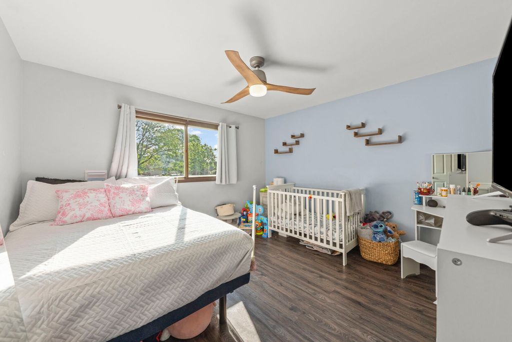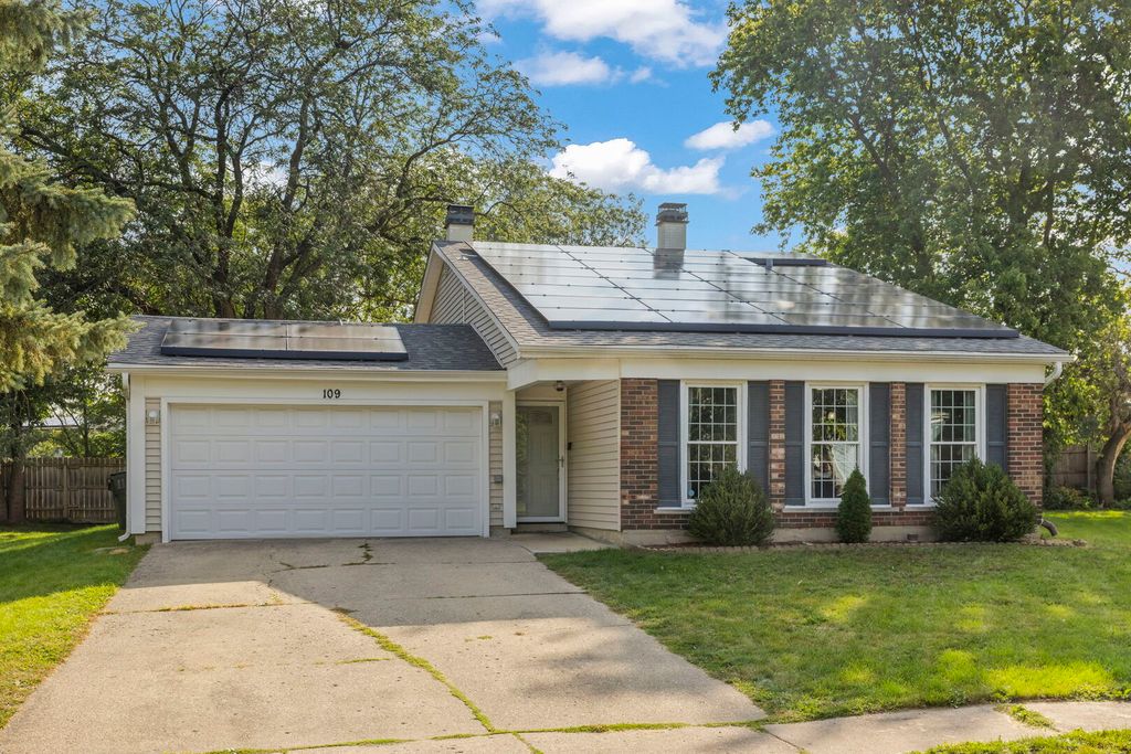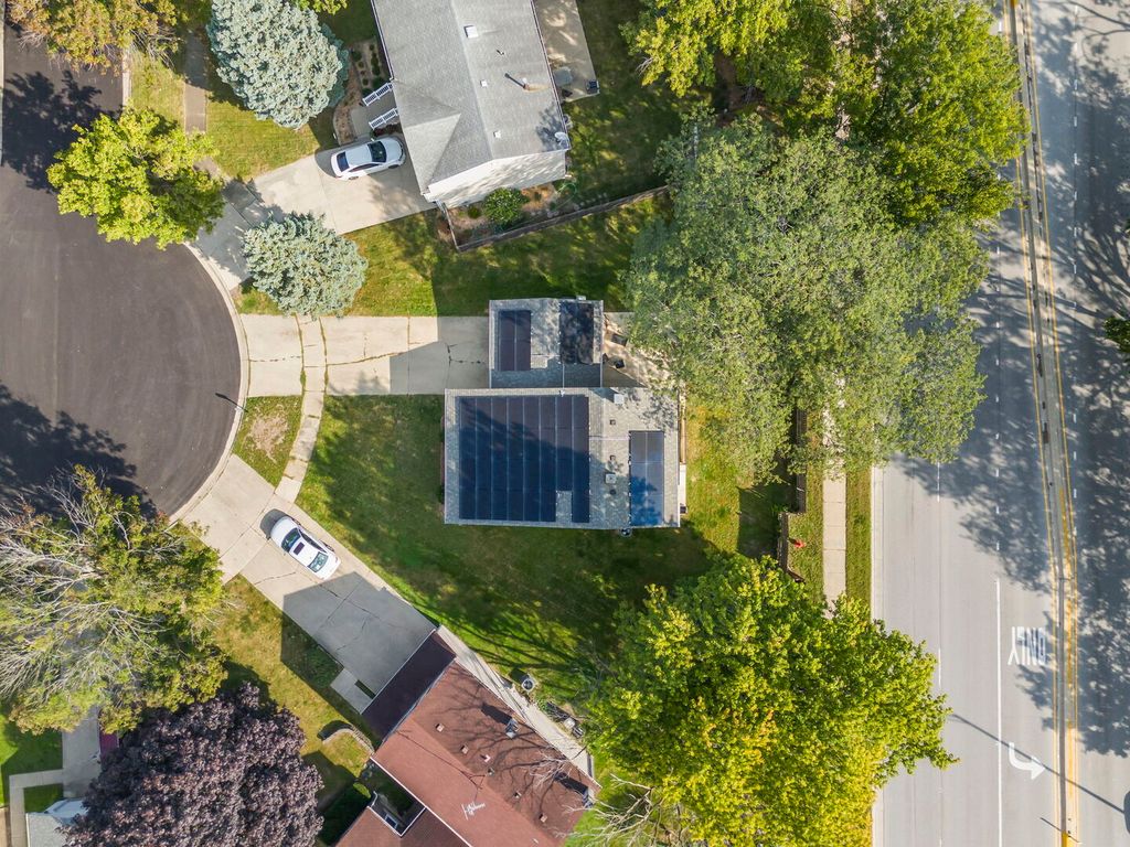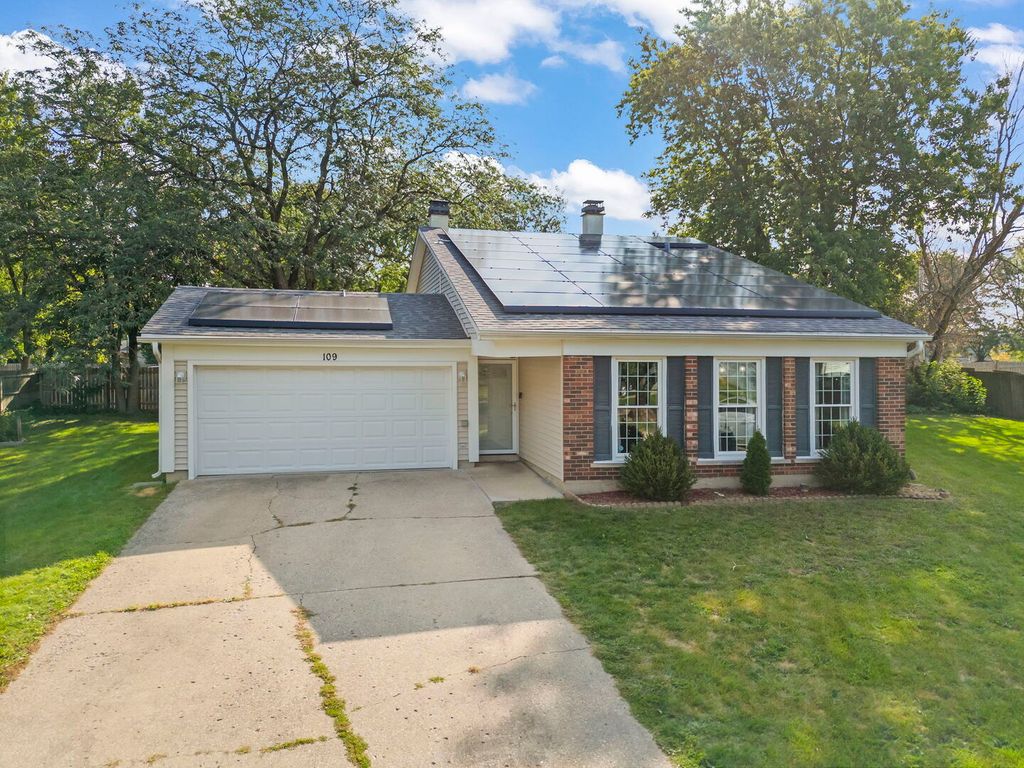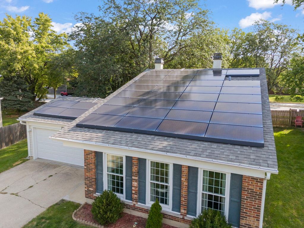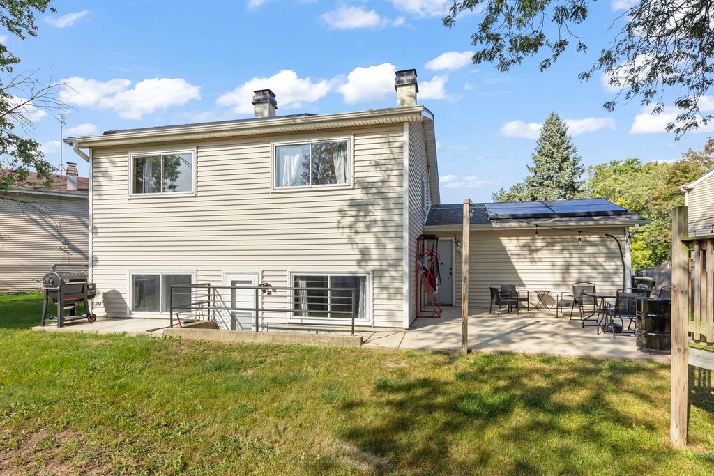 Move right in to this spacious 4 bed, 2 full bath home nestled on a peaceful cul-de-sac with so many updates. New roof and gutters (2020), new furnace and A/C (2023) including an AprilAire humidifier, new water heater (2016), new Samsung washer and dryer (2021), new refrigerator (2022) and new windows in living room (2019). Step inside the foyer and enjoy an open, light-filled floor plan designed for both everyday living and entertaining. The updated kitchen features granite countertops, stainless steel appliances and oak cabinetry and flows seamlessly into the dining area with vaulted ceilings. The spacious living room also boasts vaulted ceilings, creating an airy and inviting atmosphere. The lower level expands your living options with a primary bedroom offering a true retreat with a large walk-in closet and a fireplace. A full bath and a large laundry room with storage cabinets complete the lower level. The second floor includes three additional bedrooms and a second full bathroom providing ample space. Looking for a home of the future? Save money with solar! Plug in your electric vehicle for a quick charge on the EV charger and never lose power again with the solar battery backup system! The new solar panel system (2022) covers virtually the entire electric bill. The average monthly ComEd bill is $20. The driveway has parking for 4 cars. The large partially fenced yard has a large patio for entertaining and a very roomy shed WITH power... great for a workshop and storage. Located walking distance to Starbucks, a multitude of shopping, restaurants and Arrowhead Pond, this home combines convenience with comfort. Welcome Home!