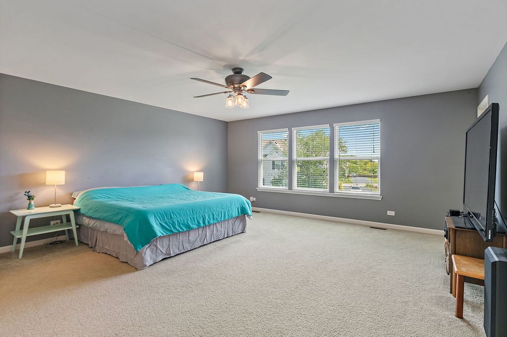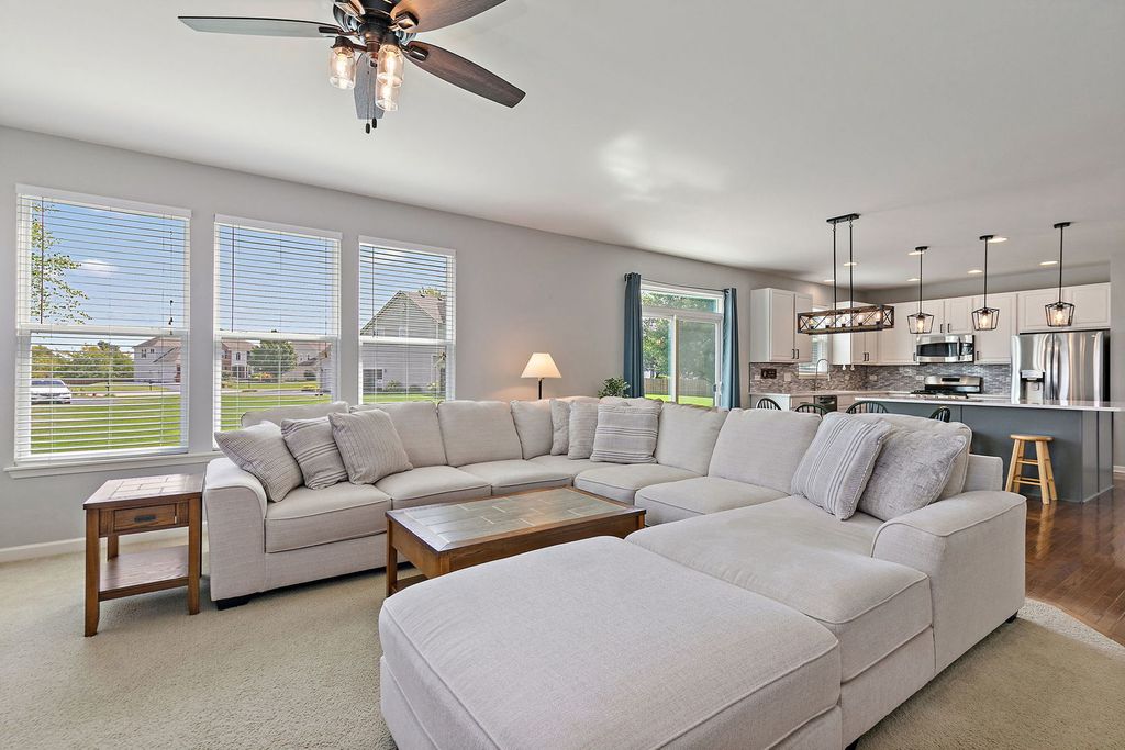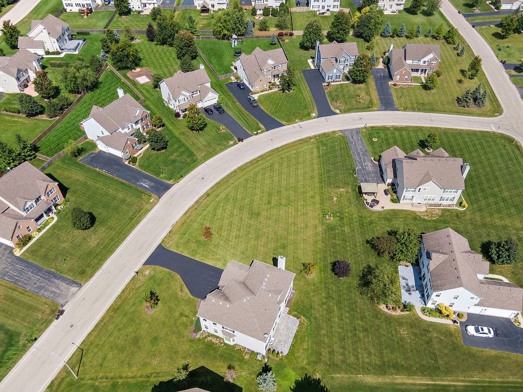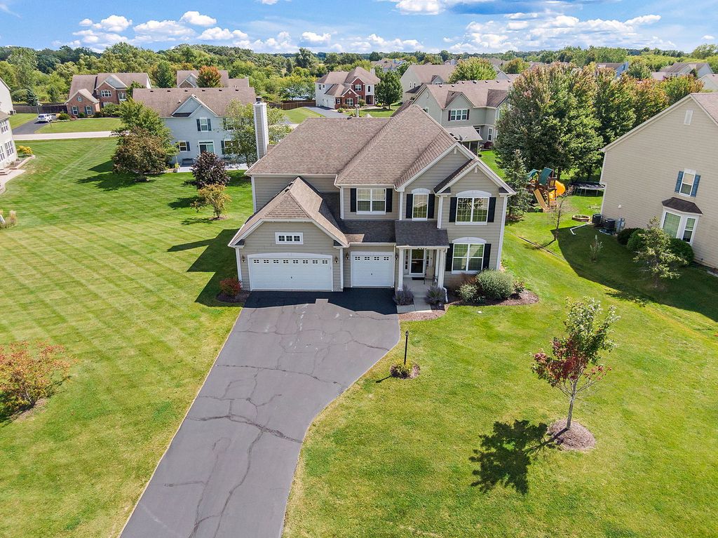 Welcome to this stunning Crystal Lake home, perfectly situated on a picturesque half-acre lot with plenty of space inside and out. A charming covered front porch invites you into a dramatic two-story foyer with gleaming hardwood floors and a spacious 23x7 entryway, setting the tone for the elegance throughout. The main level is bright and welcoming, filled with natural light streaming through an abundance of windows. White trim, six-panel doors, and an open, flowing layout create a warm and inviting atmosphere. The living and dining rooms offer excellent space for hosting family and friends, while the expansive, eat-in kitchen is the heart of the home. Featuring white cabinetry, solid-surface countertops, stainless steel appliances, a large pantry, and a center island, this kitchen is ideal for meal prep, casual dining, and entertaining. Sliding doors lead out to a stamped concrete patio, perfect for enjoying outdoor gatherings or quiet evenings. The massive family room boasts a gas-start, wood-burning fireplace with a custom mantle, creating a cozy space for relaxing nights at home. A versatile first-floor office or den provides flexibility and can easily be converted into a guest bedroom if desired. The main floor also includes a half bath, oversized laundry room, and a spacious three-car attached garage. Upstairs, you'll find a bright, sprawling loft filled with natural light - a perfect second family room, playroom, or hobby space. The luxurious master suite is a true retreat, offering dual walk-in closets and a spa-like bath with an oversized soaking tub, extra-large walk-in shower, and dual sinks. Three additional generously sized bedrooms share a full hall bath with dual sinks and a large linen closet. The unfinished basement provides endless possibilities for customization, whether you envision a recreation room, home gym, or media space. Outside, the expansive yard offers room to play, entertain, or create your dream outdoor oasis. With custom lighting, upgraded finishes, and plenty of storage throughout, this home blends style, functionality, and comfort in a sought-after Crystal Lake location.