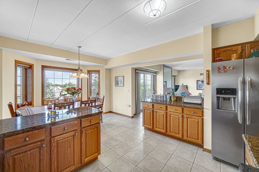 Bright and spacious 2 bed 2 bath in Long Run Creek, an all brick elevator building with flexicore concrete floors that help reduce sound transfer and provide fire rated separation, elevator replaced in 2025. Private north facing balcony accessed by twin patio doors from a large living room with gas fireplace. Porcelain tile throughout. Separate dining room with a two tier ceiling design and upgraded chandeliers. Spacious kitchen with its own table area, new granite countertops, a large pantry, and stainless steel appliances included. Large in unit laundry room with new 2024 washer and dryer included. Primary suite with walk in closet and attached full bath with whirlpool, plus a second bedroom and a second full bath. Recently replaced Milgard windows throughout and a new 2024 patio door. Attached heated underground garage parking with storage, landscaped courtyard at the rear. Close to shopping, dining, Metra, major routes, and Carl Sandburg High School. Seller willing to consider buyer closing-cost credits with full price offer. Price reflects recent building improvements, including elevator modernization and other new upgrades contributing to overall value