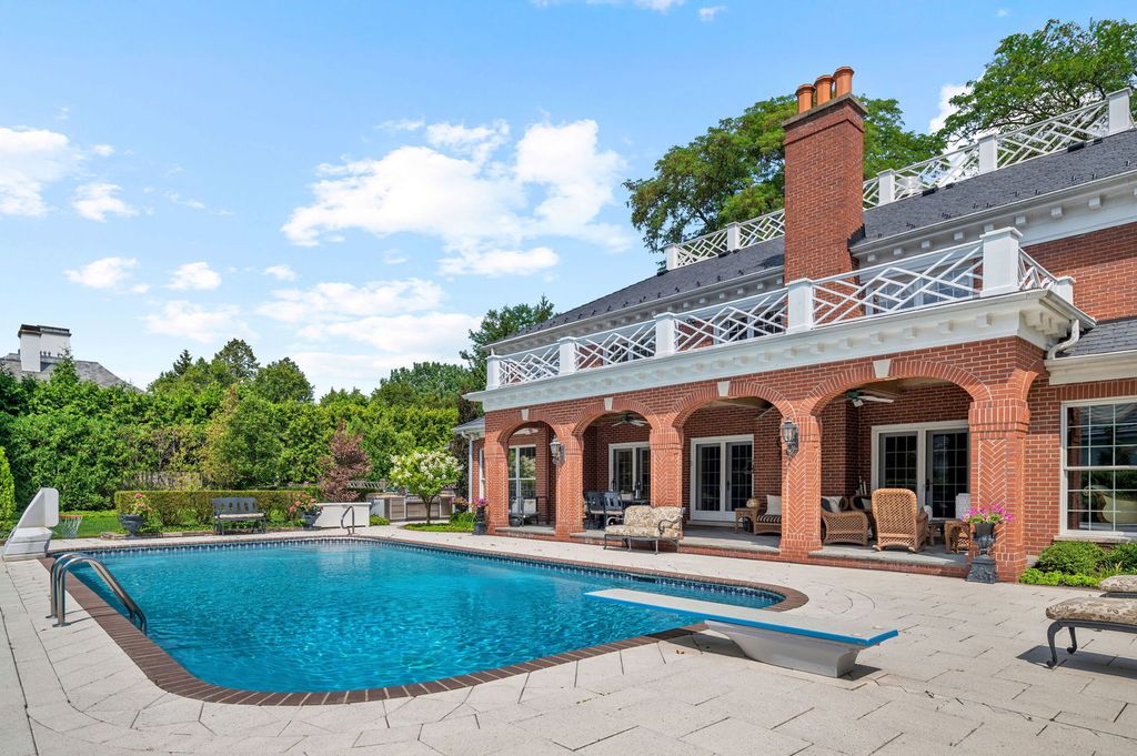 Perfectly nestled on one of Winnetka's finest enclaves, this stately 6-bedroom, 5.2-bath Georgian estate offers a rare fusion of architectural elegance, exceptional craftsmanship, and resort-style amenities. Set on nearly an acre of meticulously manicured grounds, the estate is introduced by a sweeping circular drive that highlights the home's classic brick facade, brand-new DaVinci slate roof, columned portico, and timeless symmetry. Together, these elements create a striking first impression and set the stage for interiors that exude sophistication at every turn. Step inside the grand "bookmatched" marble-floored foyer, where a dramatic staircase sets a refined tone for the home. To one side, the formal living room offers an inviting gathering space anchored by a marble fireplace, while the formal dining room is perfectly scaled for both intimate dinners and large-scale entertaining. A massive, richly paneled home office with dramatic coffered ceilings offers an impressive and inspiring workspace. At the heart of the home, the gourmet kitchen boasts professional-grade appliances, an oversized island, full wall of pantry storage, and a sunlit breakfast area all overlooking the magnificent pool and grounds. A butler's pantry ideally placed between the kitchen and dining room provides effortless entertaining. Just beyond, the kitchen opens to a cozy family room with a fireplace and wet bar, while French doors lead to an expansive covered terrace framed by graceful curved archways and cooled by ceiling fans. This spectacular outdoor living space features a brand-new outdoor kitchen fully equipped for grilling and al fresco dining, leading to the sparkling pool, surrounding patio and yard, creating a seamless setting for summer entertaining and secluded relaxation. A convenient first-floor laundry/mud room right off the 3-car heated garage with epoxy flooring and 2 powder rooms adds everyday ease. Upstairs, the elegantly appointed primary suite offers dual walk-in closets, a dedicated vanity area, and a spa-inspired bath with separate vanities and radiant heated floors. Four well-proportioned additional bedrooms, each with generous closets and either en-suite or adjoining baths, provide comfortable accommodations for family and guests. This level is further enhanced by expansive linen closets, abundant storage, and a dedicated luggage room. The impeccably finished lower-level rivals any private club, featuring a state-of-the-art home theatre, richly paneled billiards and game room, fully outfitted bar, expansive fitness studio, wine cellar, guest suite, and a dedicated woodshop for refined hobbyists or craftsmen. Located in one of Winnetka's most prestigious locations and served by its award-winning schools, this remarkable estate perfectly balances classic sophistication with modern luxury. Combining architectural pedigree, unparalleled amenities, and impeccably landscaped grounds, this is a home to be cherished for generations. Furniture available for sale.