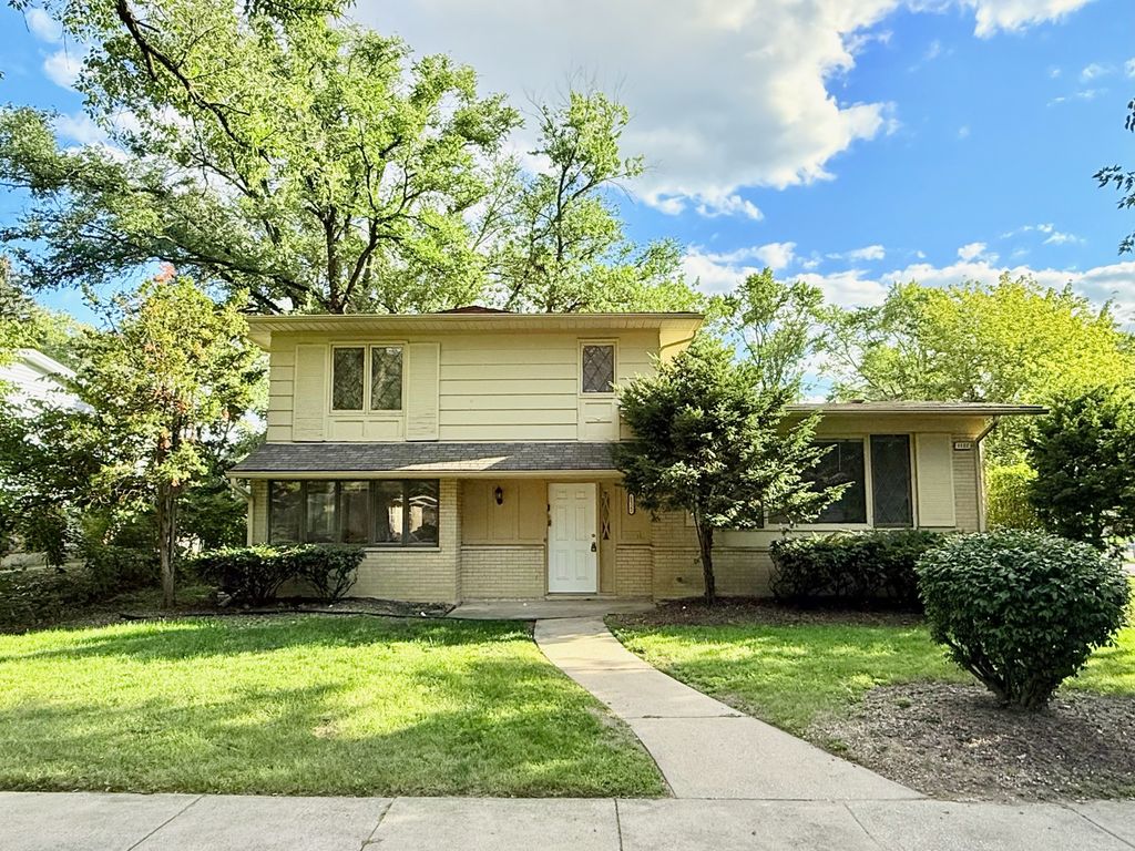 Nestled on a charming corner lot, this Glenwood home sits in a community with undeniable pride. The welcoming layout offers fantastic flexibility with two distinct living spaces, including a large family room warmed by a fireplace. From there, step out onto the deck in your private, fenced-in backyard, perfect for weekend cookouts. Enjoy the quiet surroundings while being just moments from the beautiful trails of the Cook County Forest Preserves. The home's second floor holds four bedrooms and a shared full bathroom featuring a convenient dual-sink vanity. Your eat-in kitchen comes ready with a full suite of appliances. The detached 2.5-car garage is a true standout, providing not only great parking but also a separate, dedicated workshop for all your projects and storage needs.
